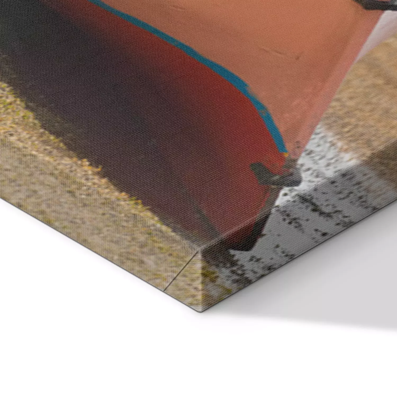 De print wordt aangebracht op hoogwaardig canvas dat op een schildersweefgetouw (spieraam) wordt gespannen. Omdat de print de zijranden bedekt, hoeft het ontwerp niet met een extra kader te worden omlijst. Wij raden ook composities aan die uit meerdere foto's bestaan en zo een coherente compositie vormen.