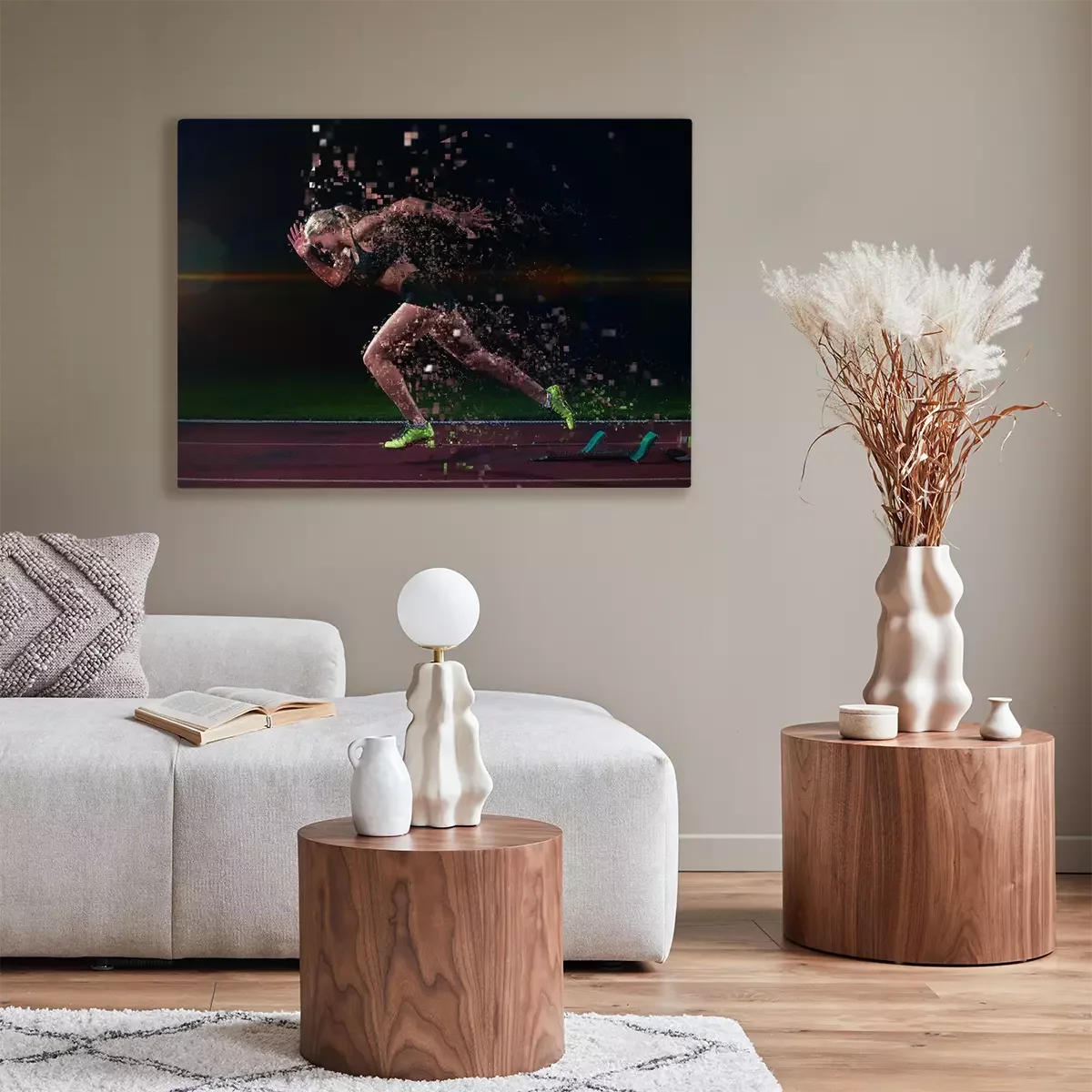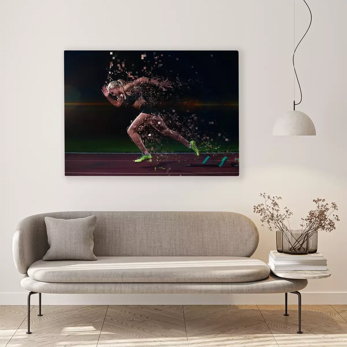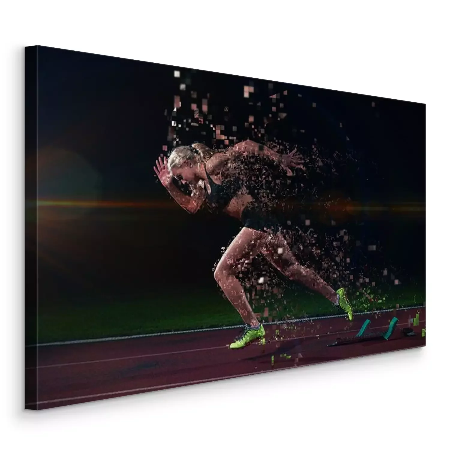 Canvas: pixelated ontwerp van de vrouw sprinter startblokken verlaten
