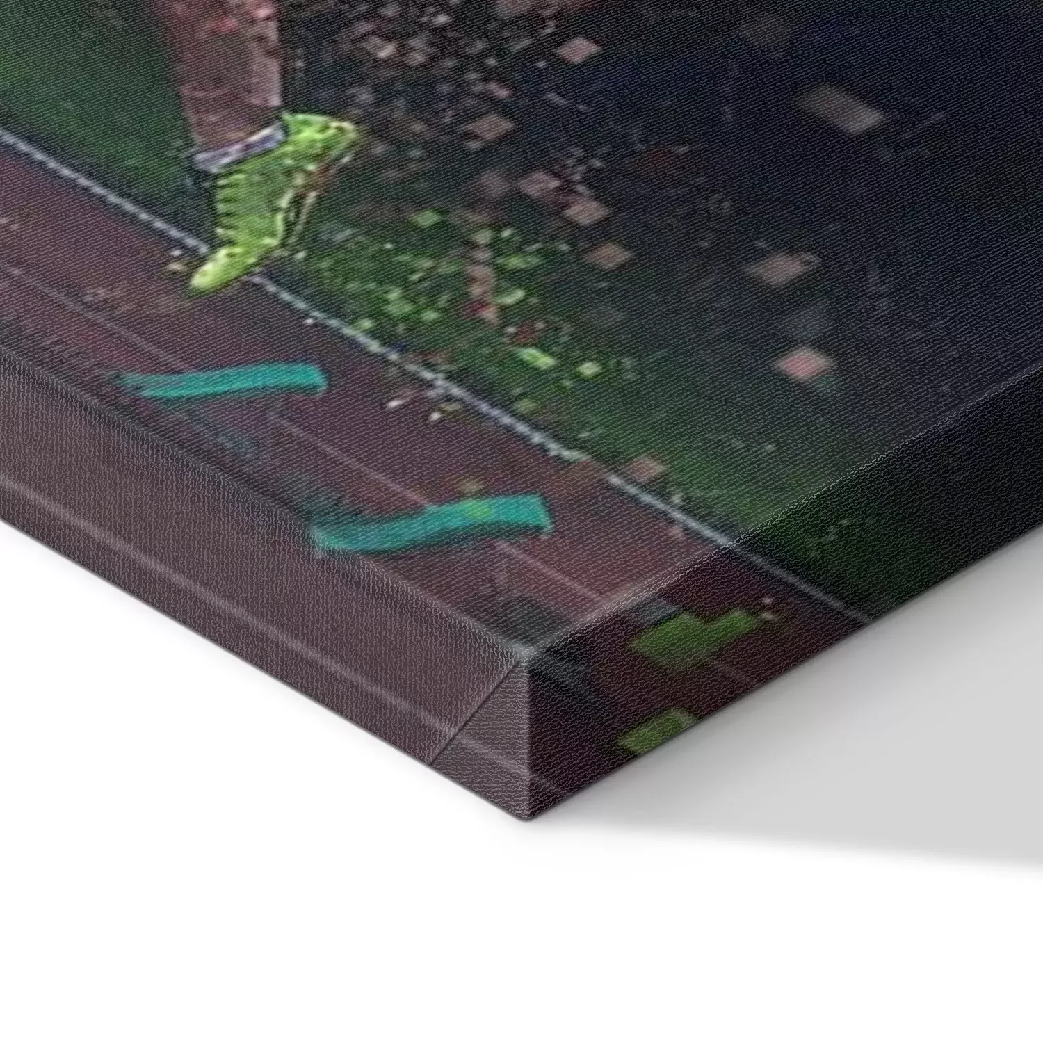 De print wordt aangebracht op hoogwaardig canvas dat op een schildersweefgetouw (spieraam) wordt gespannen. Omdat de print de zijranden bedekt, hoeft het ontwerp niet met een extra kader te worden omlijst. Wij raden ook composities aan die uit meerdere foto's bestaan en zo een coherente compositie vormen.