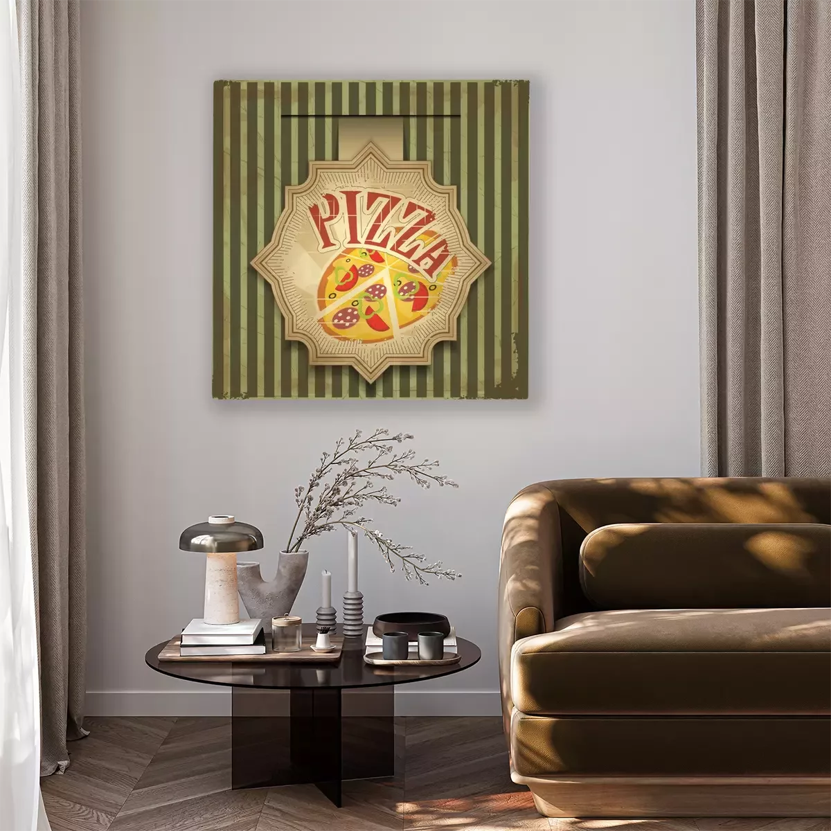 vintage menu - chef-kok en een pizza op grunge achtergrond