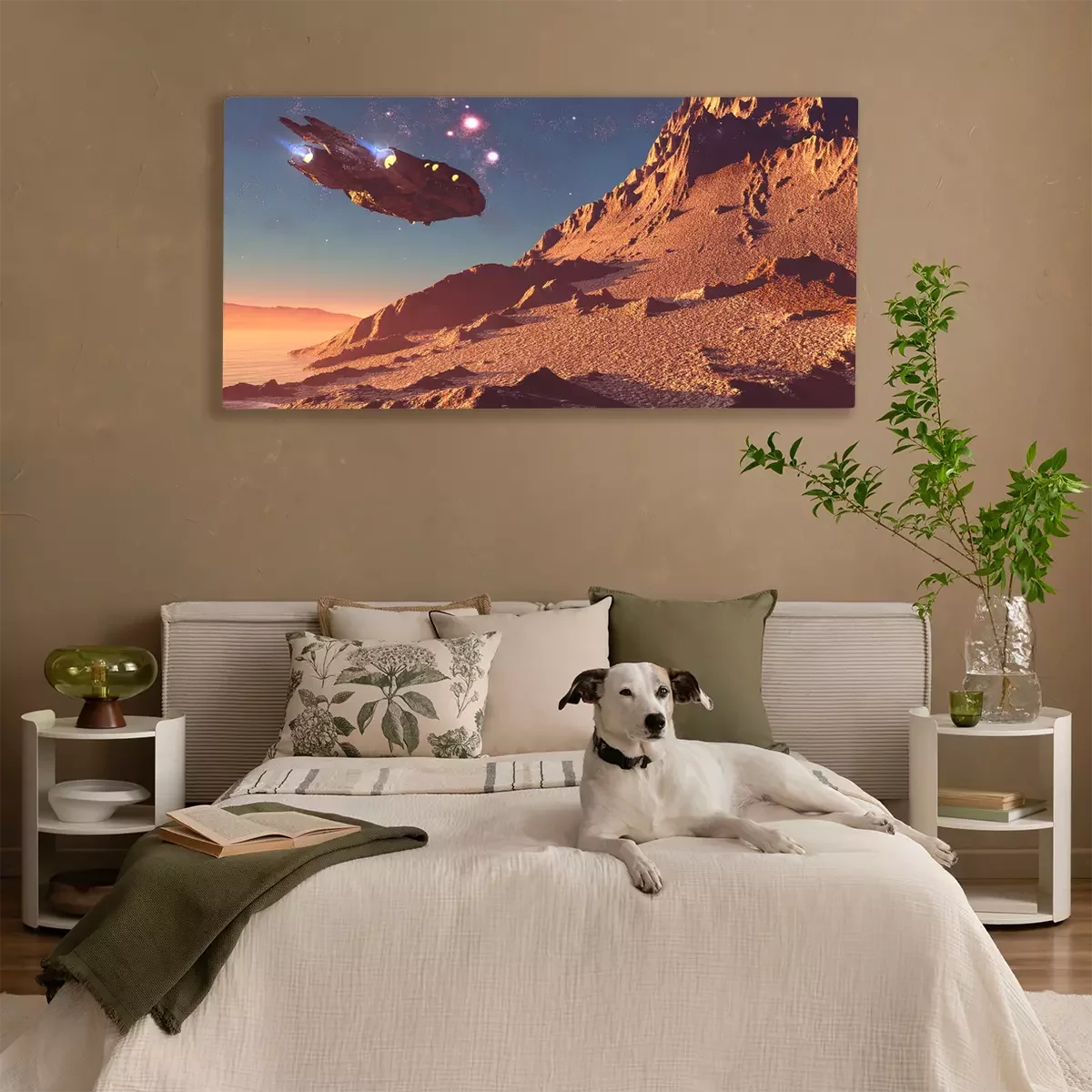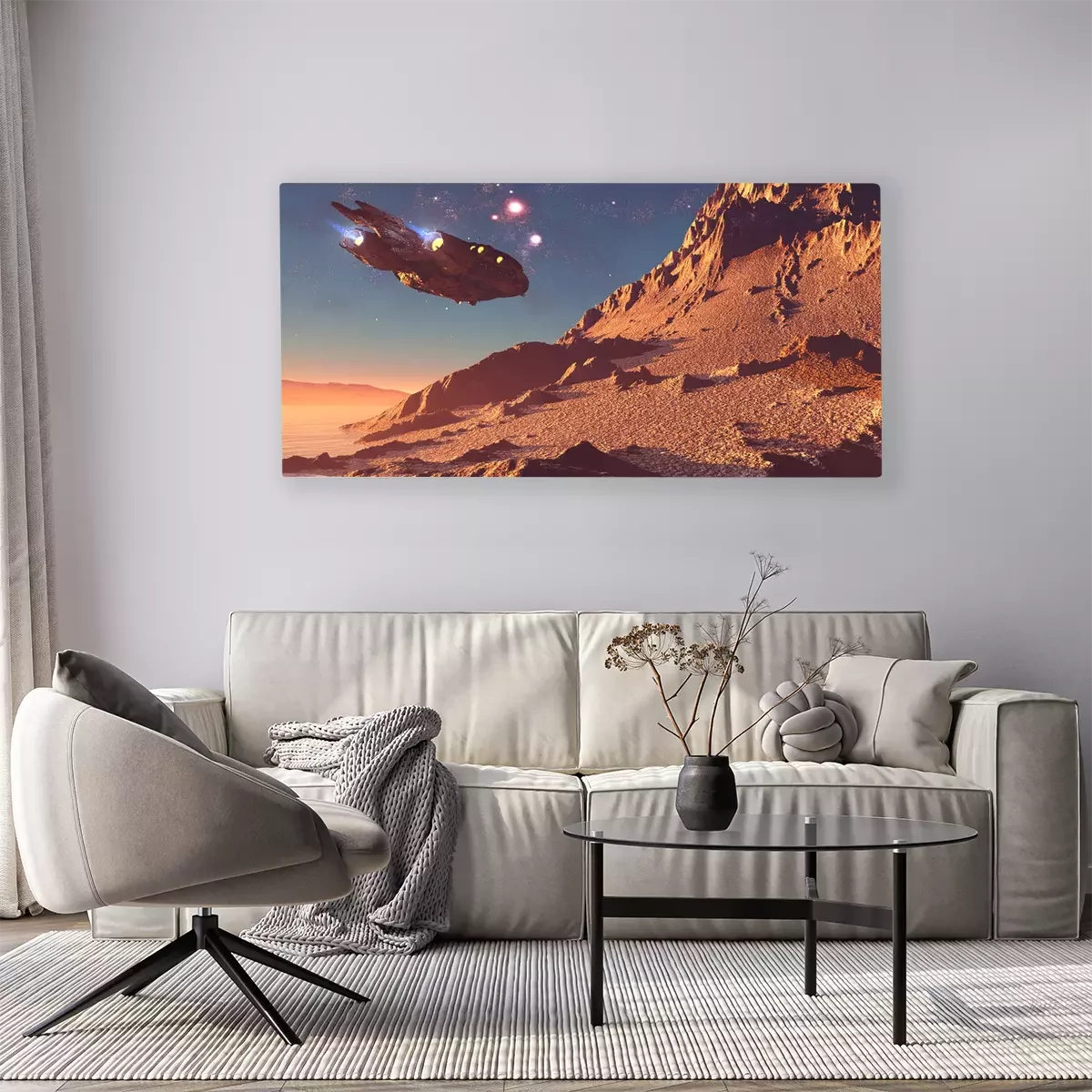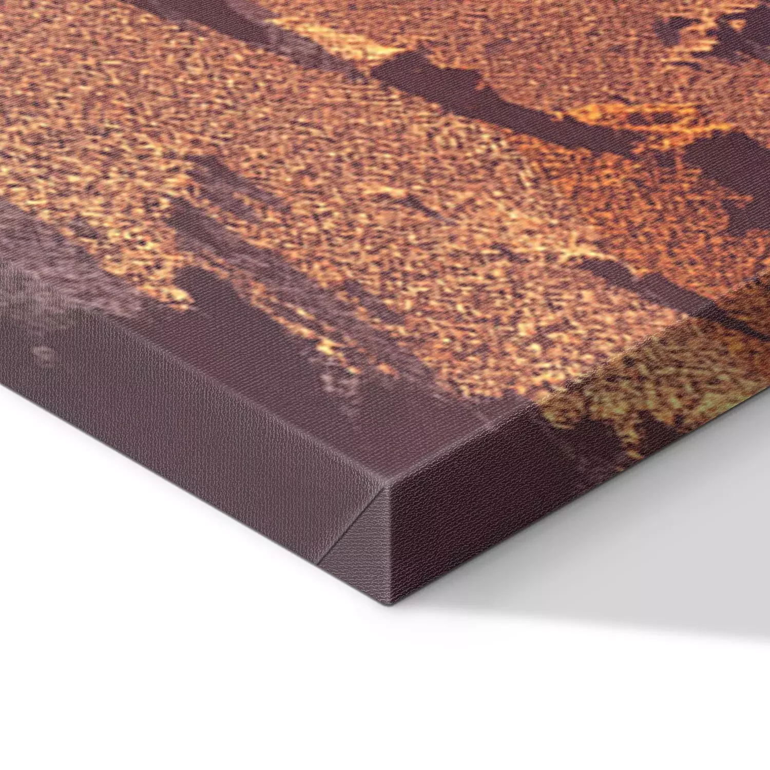 De print wordt aangebracht op hoogwaardig canvas dat op een schildersweefgetouw (spieraam) wordt gespannen. Omdat de print de zijranden bedekt, hoeft het ontwerp niet met een extra kader te worden omlijst. Wij raden ook composities aan die uit meerdere foto's bestaan en zo een coherente compositie vormen.