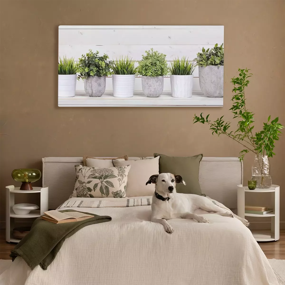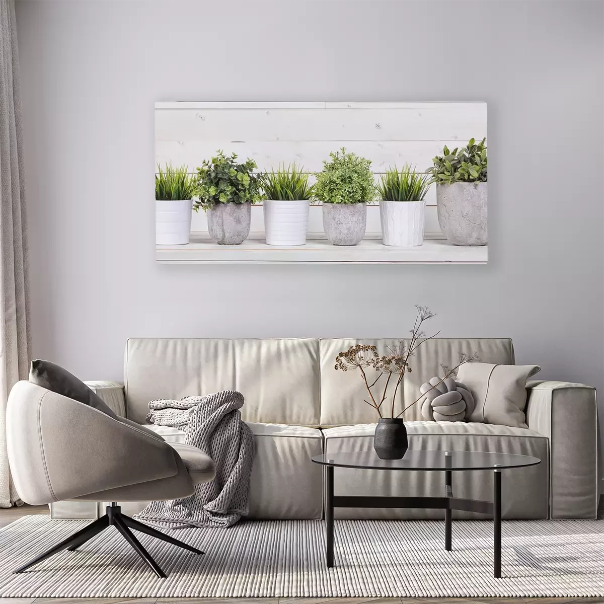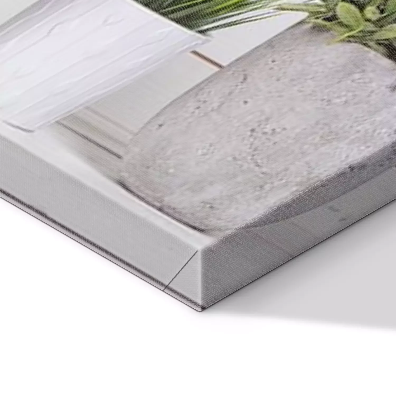 De print wordt aangebracht op hoogwaardig canvas dat op een schildersweefgetouw (spieraam) wordt gespannen. Omdat de print de zijranden bedekt, hoeft het ontwerp niet met een extra kader te worden omlijst. Wij raden ook composities aan die uit meerdere foto's bestaan en zo een coherente compositie vormen.