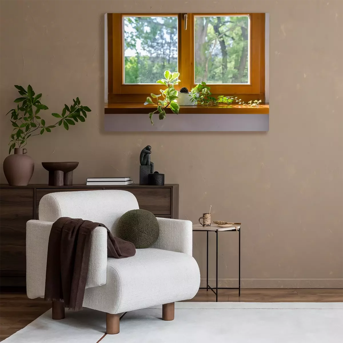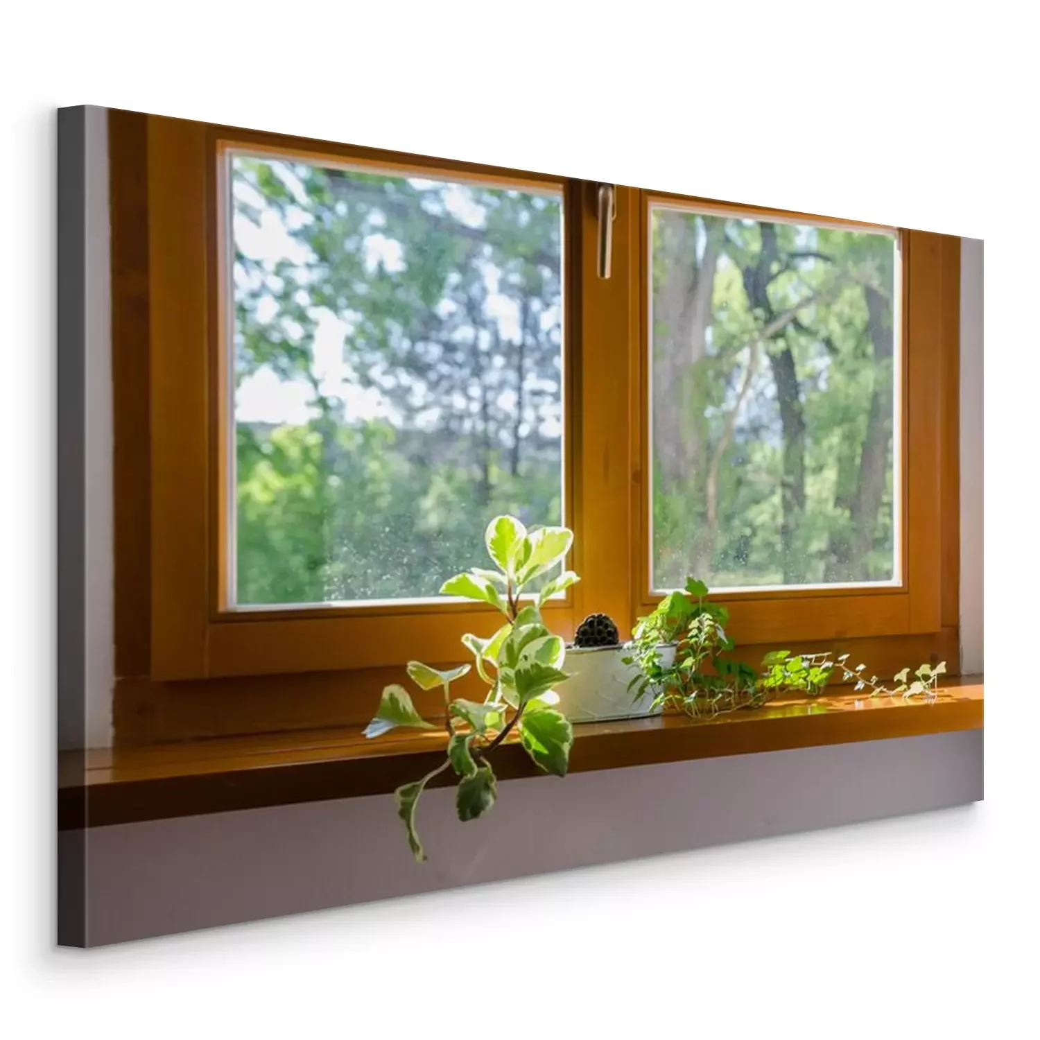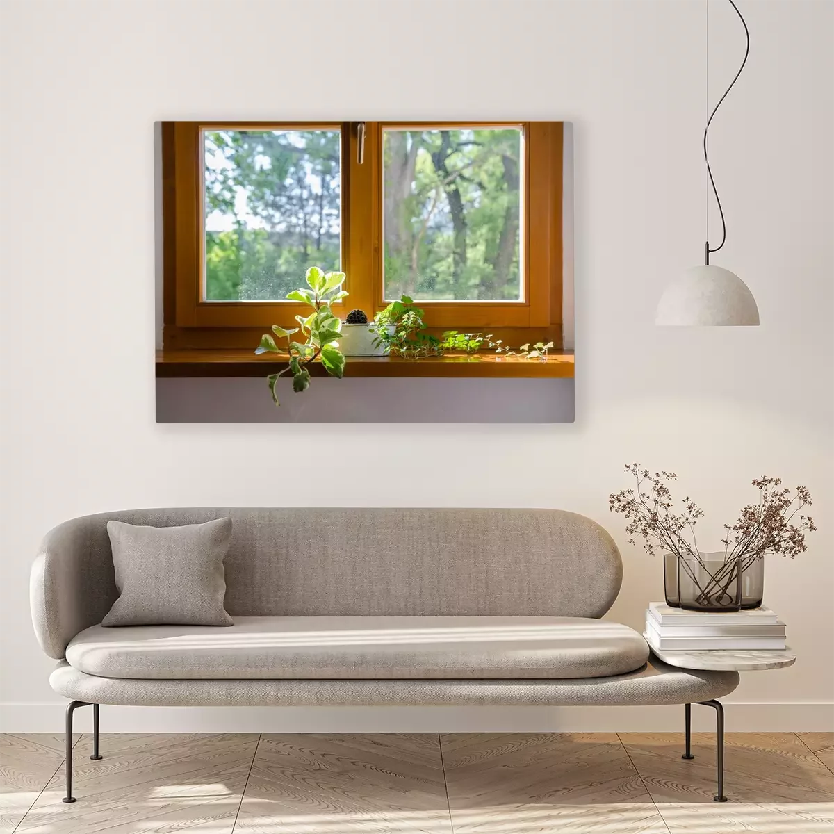 Canvas: Planten in pot in het venster - zacht middagzonlicht