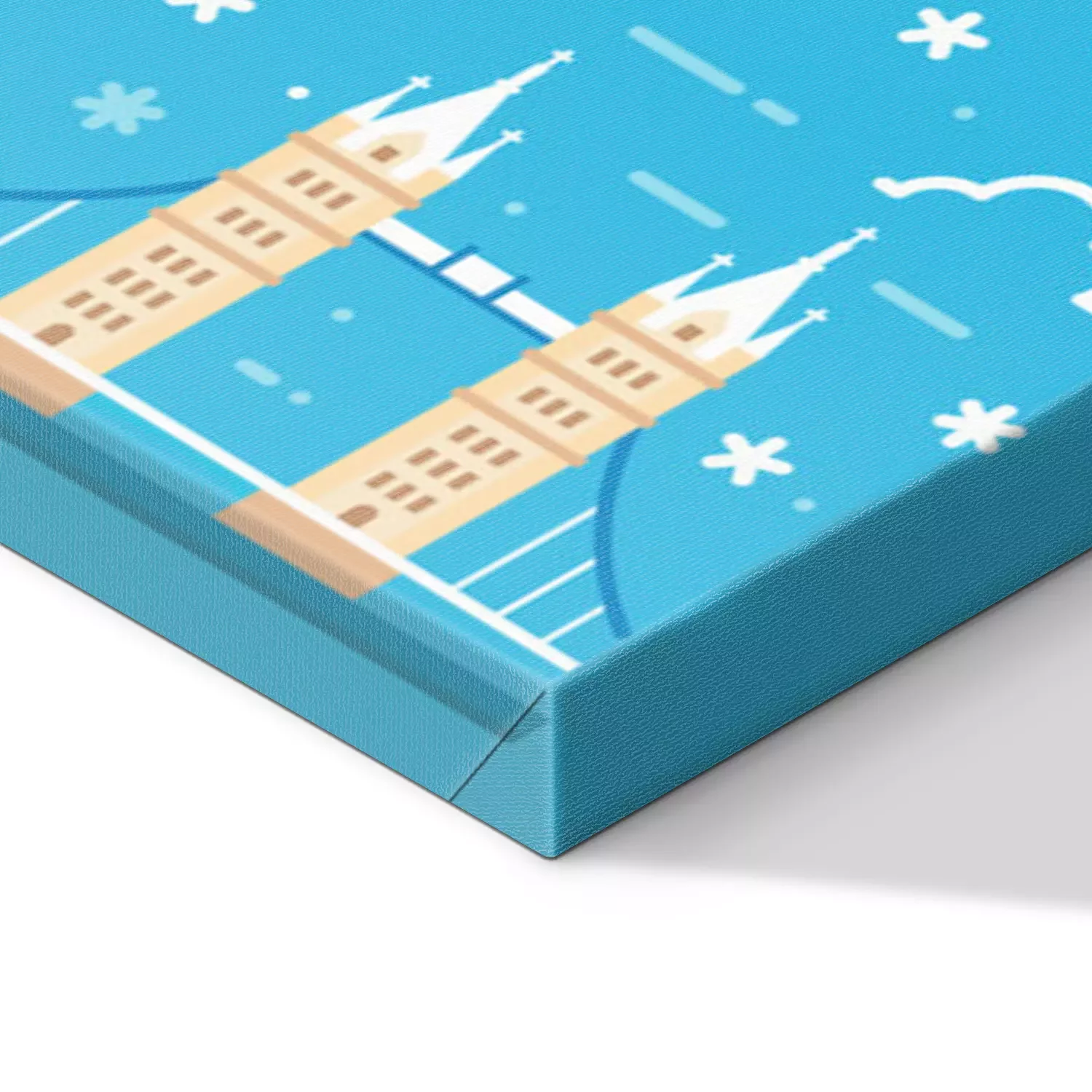 De print wordt aangebracht op hoogwaardig canvas dat op een schildersweefgetouw (spieraam) wordt gespannen. Omdat de print de zijranden bedekt, hoeft het ontwerp niet met een extra kader te worden omlijst. Wij raden ook composities aan die uit meerdere foto's bestaan en zo een coherente compositie vormen.