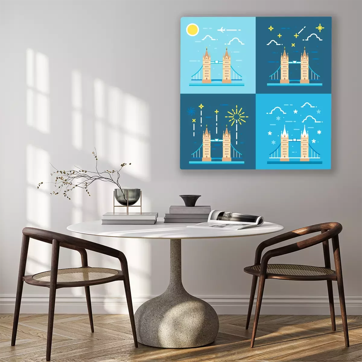 Canvas: Platte design 4 stijlen van de Tower Bridge Verenigd Koninkrijk