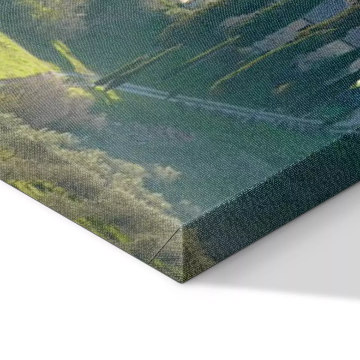 De print wordt aangebracht op hoogwaardig canvas dat op een schildersweefgetouw (spieraam) wordt gespannen. Omdat de print de zijranden bedekt, hoeft het ontwerp niet met een extra kader te worden omlijst. Wij raden ook composities aan die uit meerdere foto's bestaan en zo een coherente compositie vormen.