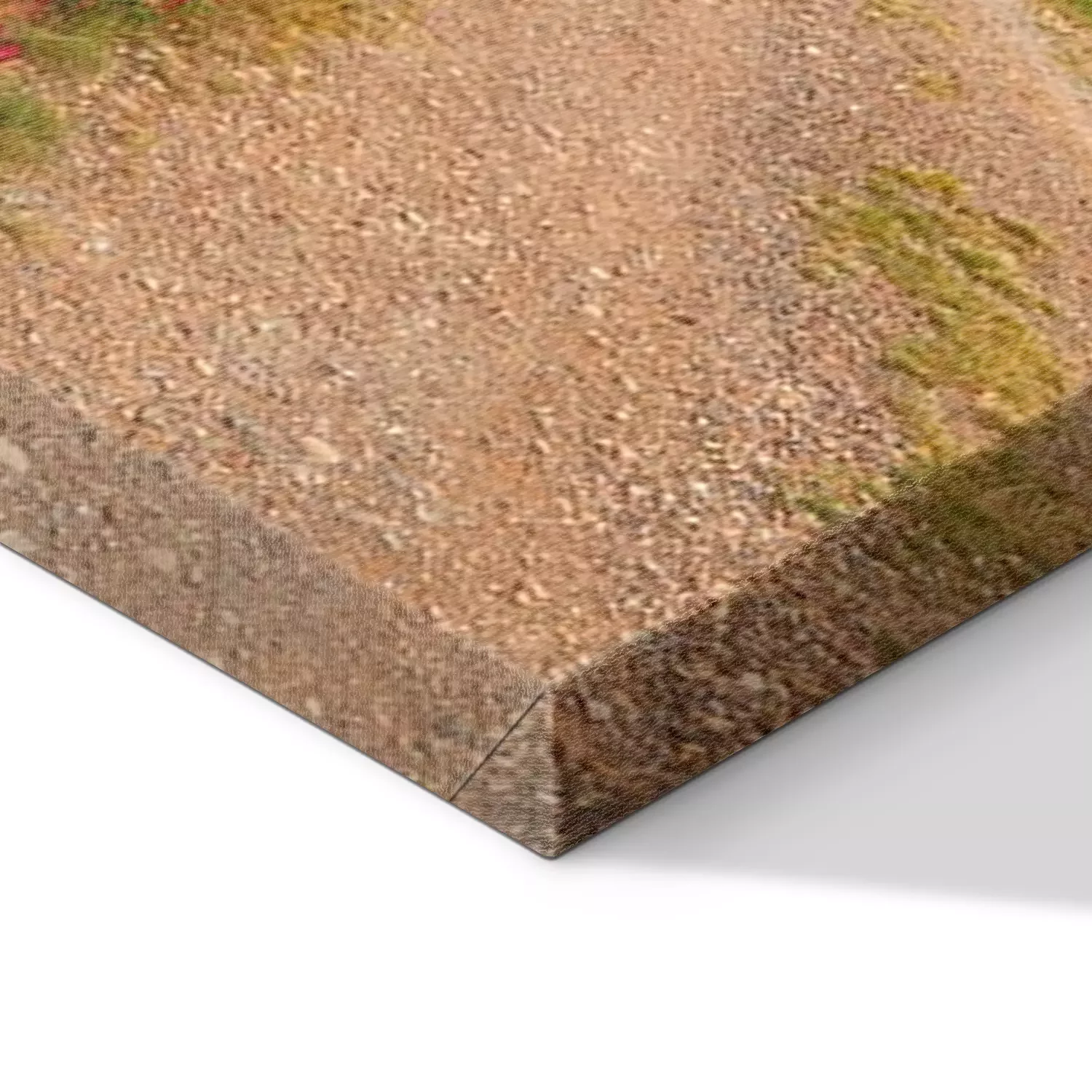 De print wordt aangebracht op hoogwaardig canvas dat op een schildersweefgetouw (spieraam) wordt gespannen. Omdat de print de zijranden bedekt, hoeft het ontwerp niet met een extra kader te worden omlijst. Wij raden ook composities aan die uit meerdere foto's bestaan en zo een coherente compositie vormen.