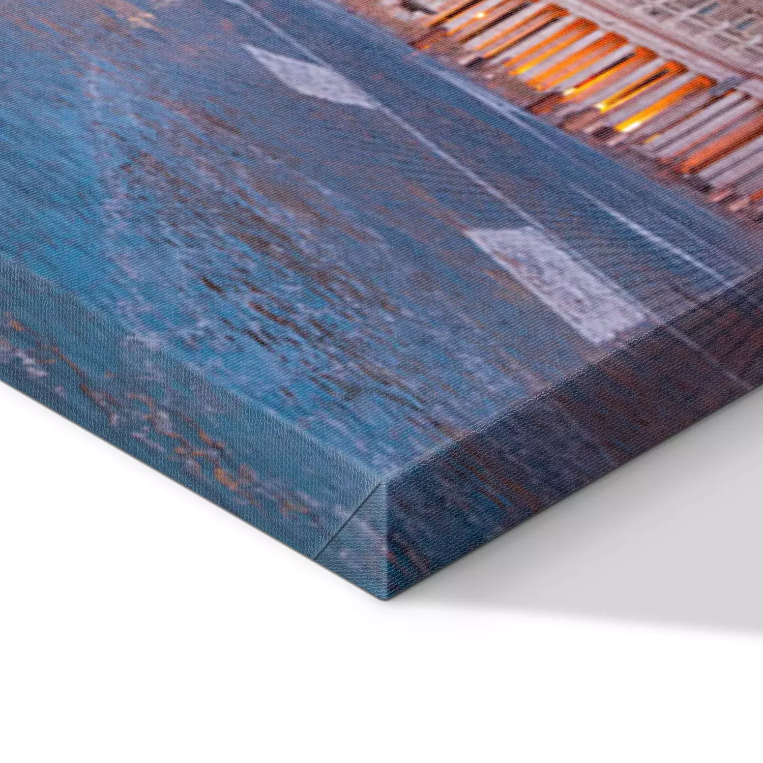 De print wordt aangebracht op hoogwaardig canvas dat op een schildersweefgetouw (spieraam) wordt gespannen. Omdat de print de zijranden bedekt, hoeft het ontwerp niet met een extra kader te worden omlijst. Wij raden ook composities aan die uit meerdere foto's bestaan en zo een coherente compositie vormen.