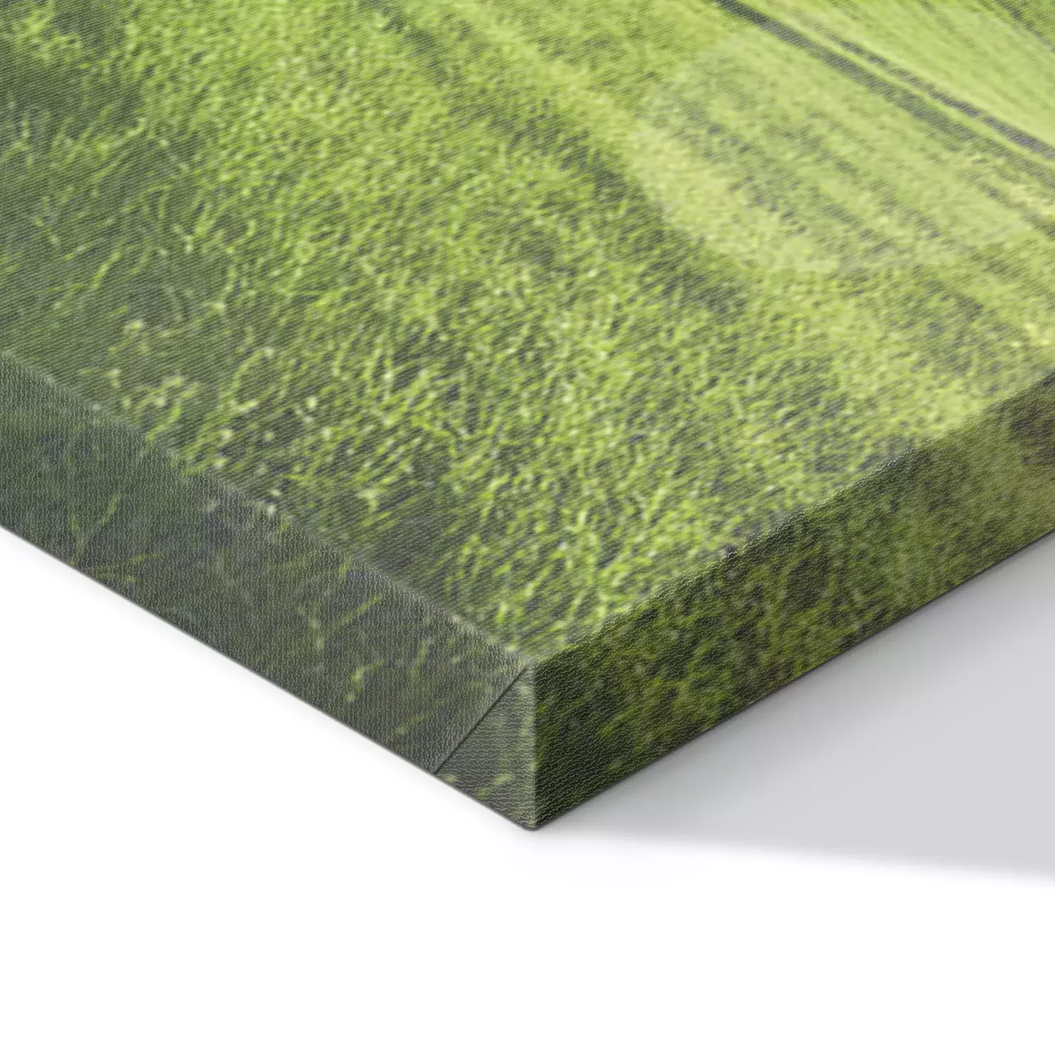 De print wordt aangebracht op hoogwaardig canvas dat op een schildersweefgetouw (spieraam) wordt gespannen. Omdat de print de zijranden bedekt, hoeft het ontwerp niet met een extra kader te worden omlijst. Wij raden ook composities aan die uit meerdere foto's bestaan en zo een coherente compositie vormen.
