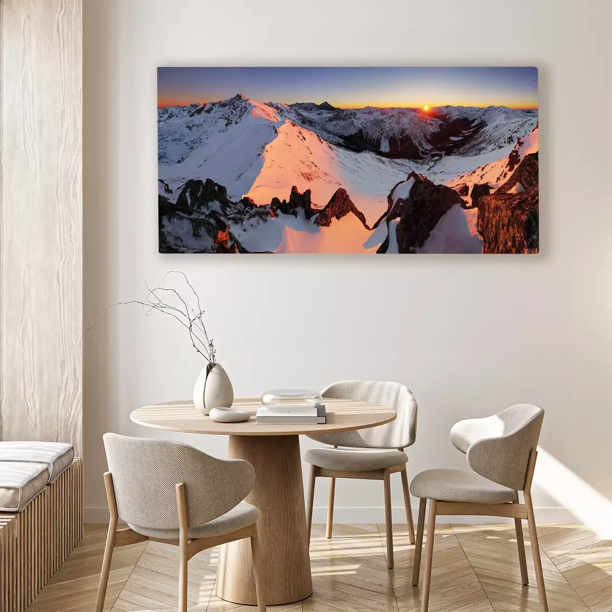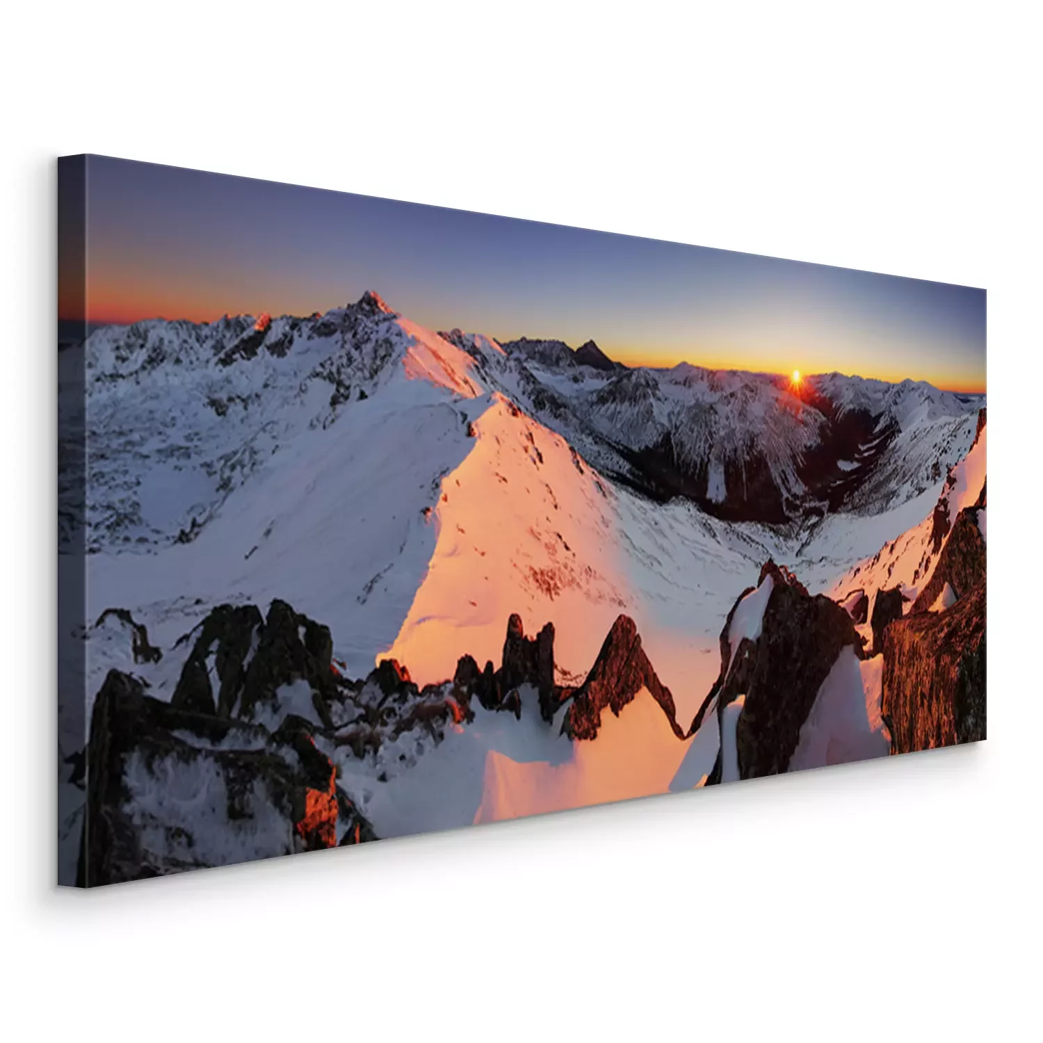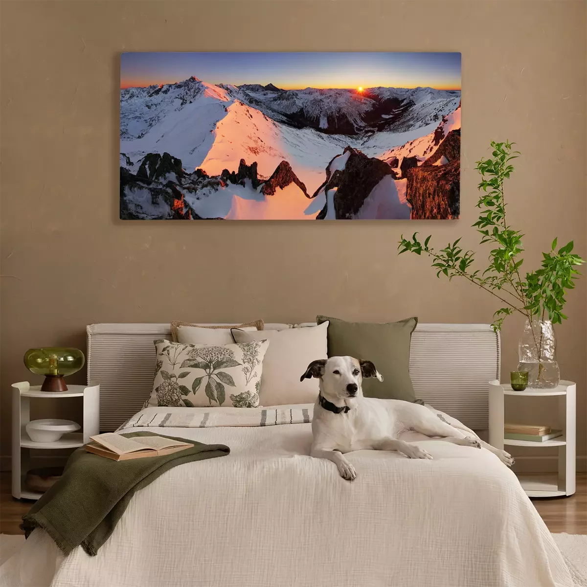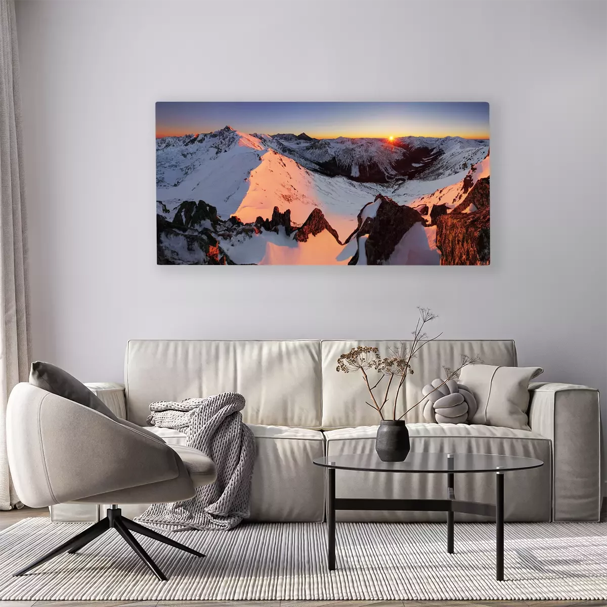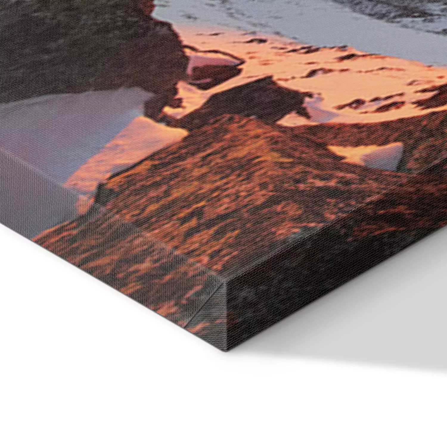 De print wordt aangebracht op hoogwaardig canvas dat op een schildersweefgetouw (spieraam) wordt gespannen. Omdat de print de zijranden bedekt, hoeft het ontwerp niet met een extra kader te worden omlijst. Wij raden ook composities aan die uit meerdere foto's bestaan en zo een coherente compositie vormen.