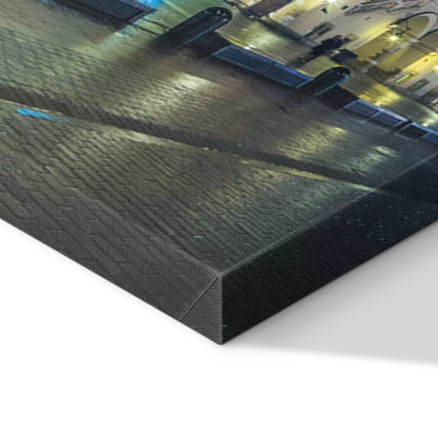 De print wordt aangebracht op hoogwaardig canvas dat op een schildersweefgetouw (spieraam) wordt gespannen. Omdat de print de zijranden bedekt, hoeft het ontwerp niet met een extra kader te worden omlijst. Wij raden ook composities aan die uit meerdere foto's bestaan en zo een coherente compositie vormen.