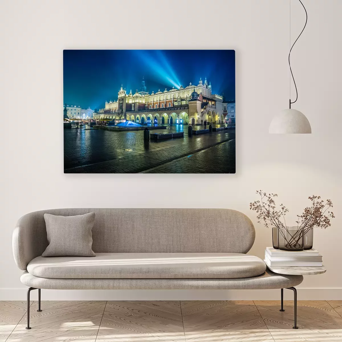 Canvas: Polen, Krakau. Market Square 's nachts.