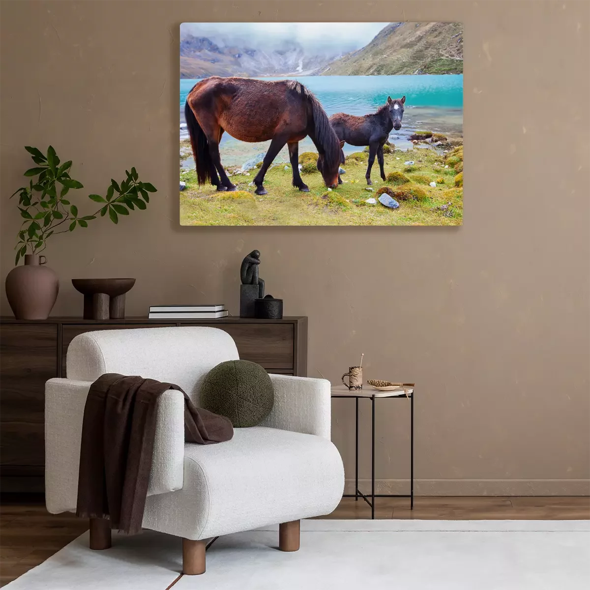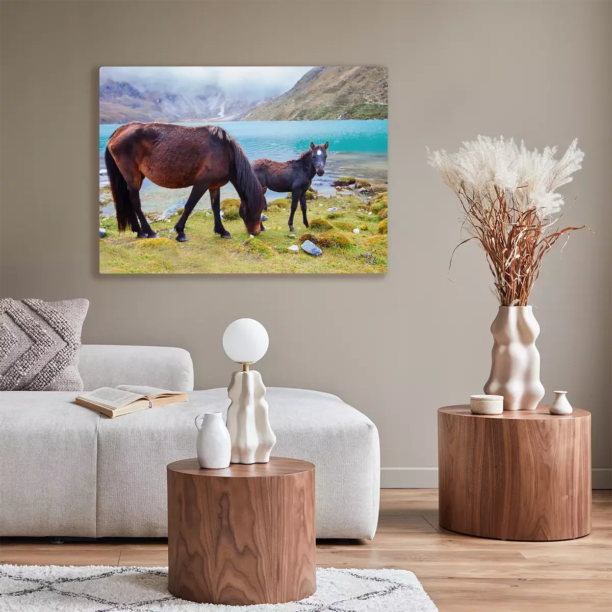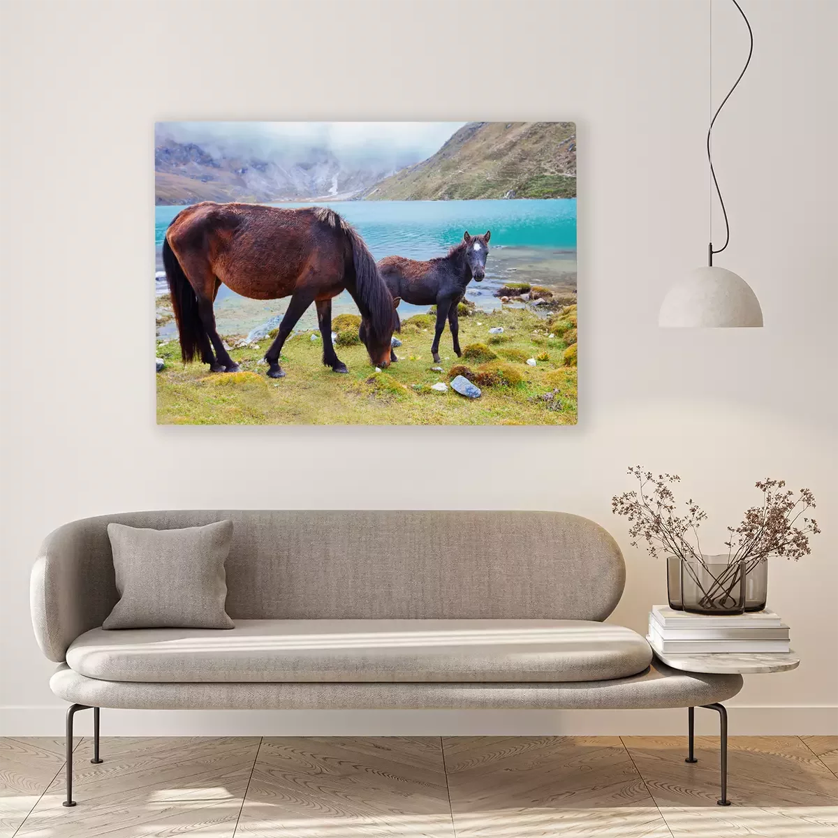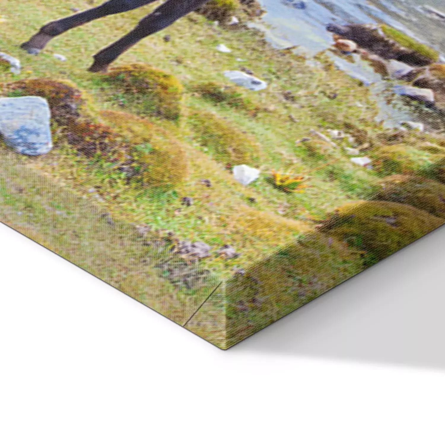 De print wordt aangebracht op hoogwaardig canvas dat op een schildersweefgetouw (spieraam) wordt gespannen. Omdat de print de zijranden bedekt, hoeft het ontwerp niet met een extra kader te worden omlijst. Wij raden ook composities aan die uit meerdere foto's bestaan en zo een coherente compositie vormen.