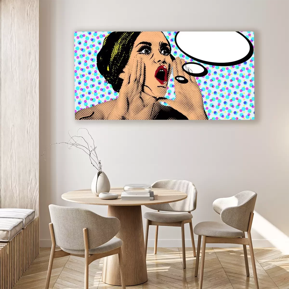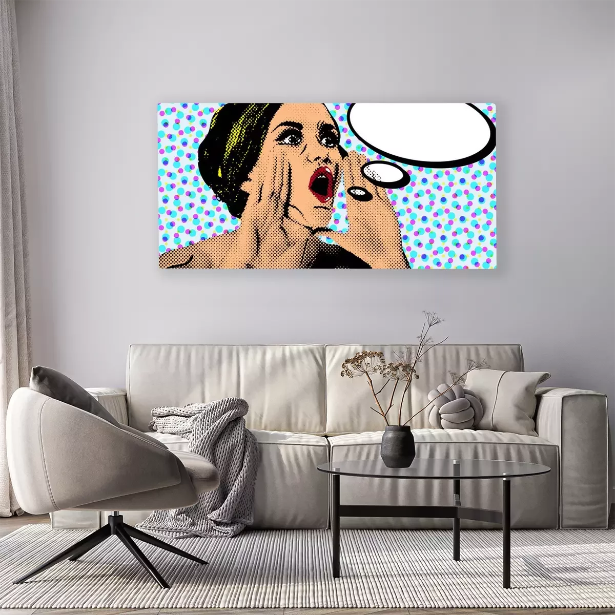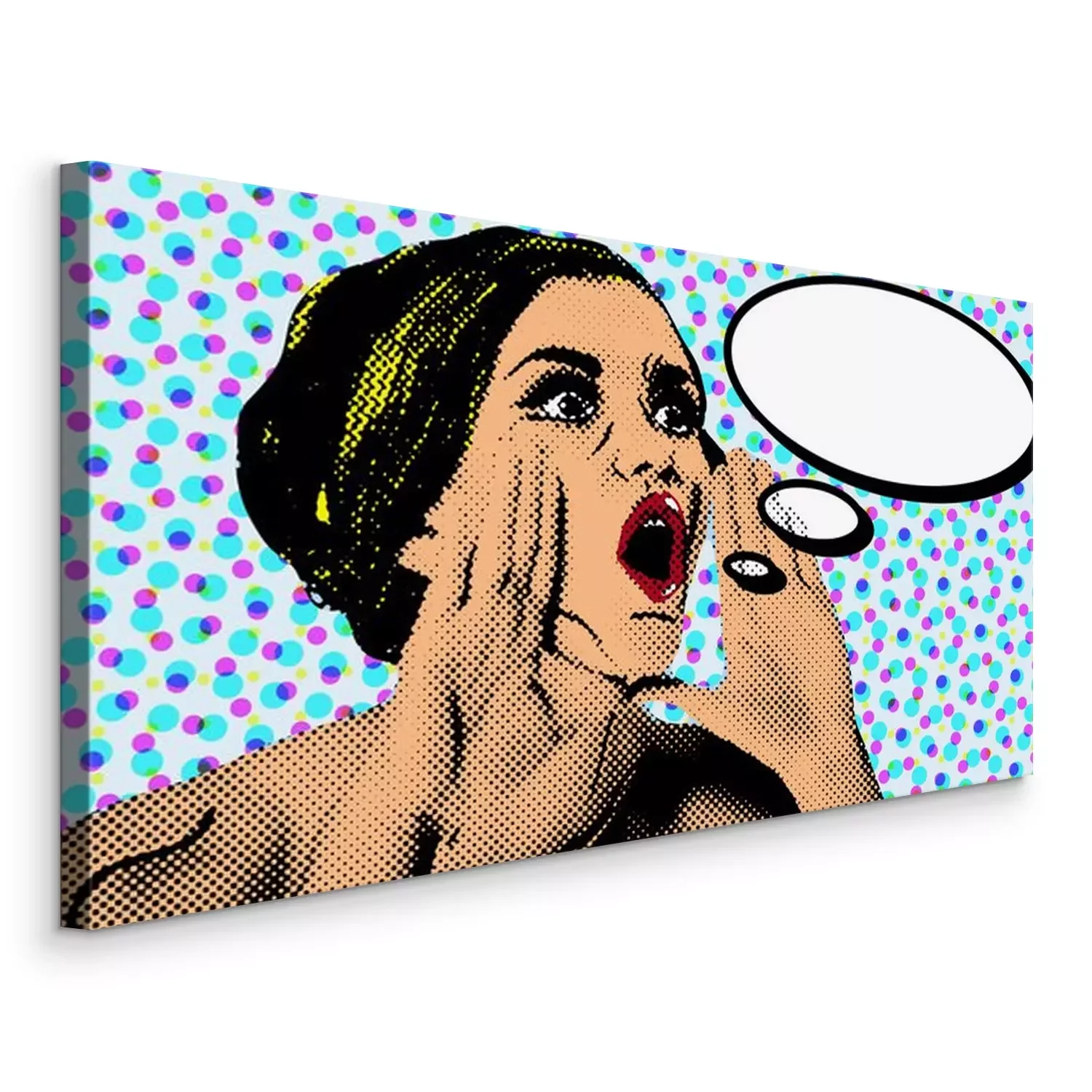 Canvas: Pop art comic stijl vrouw met tekstballon