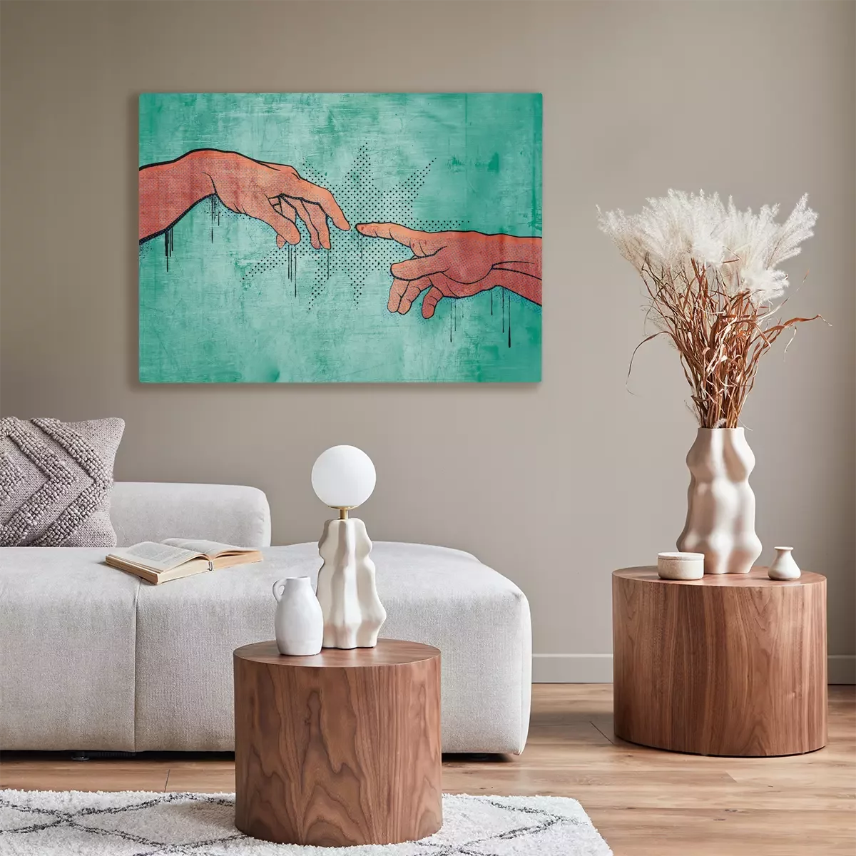 Pop-art handen uit de schepping van adam