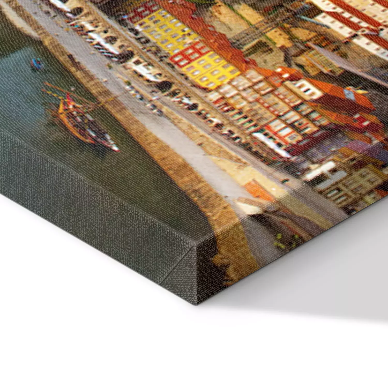 De print wordt aangebracht op hoogwaardig canvas dat op een schildersweefgetouw (spieraam) wordt gespannen. Omdat de print de zijranden bedekt, hoeft het ontwerp niet met een extra kader te worden omlijst. Wij raden ook composities aan die uit meerdere foto's bestaan en zo een coherente compositie vormen.