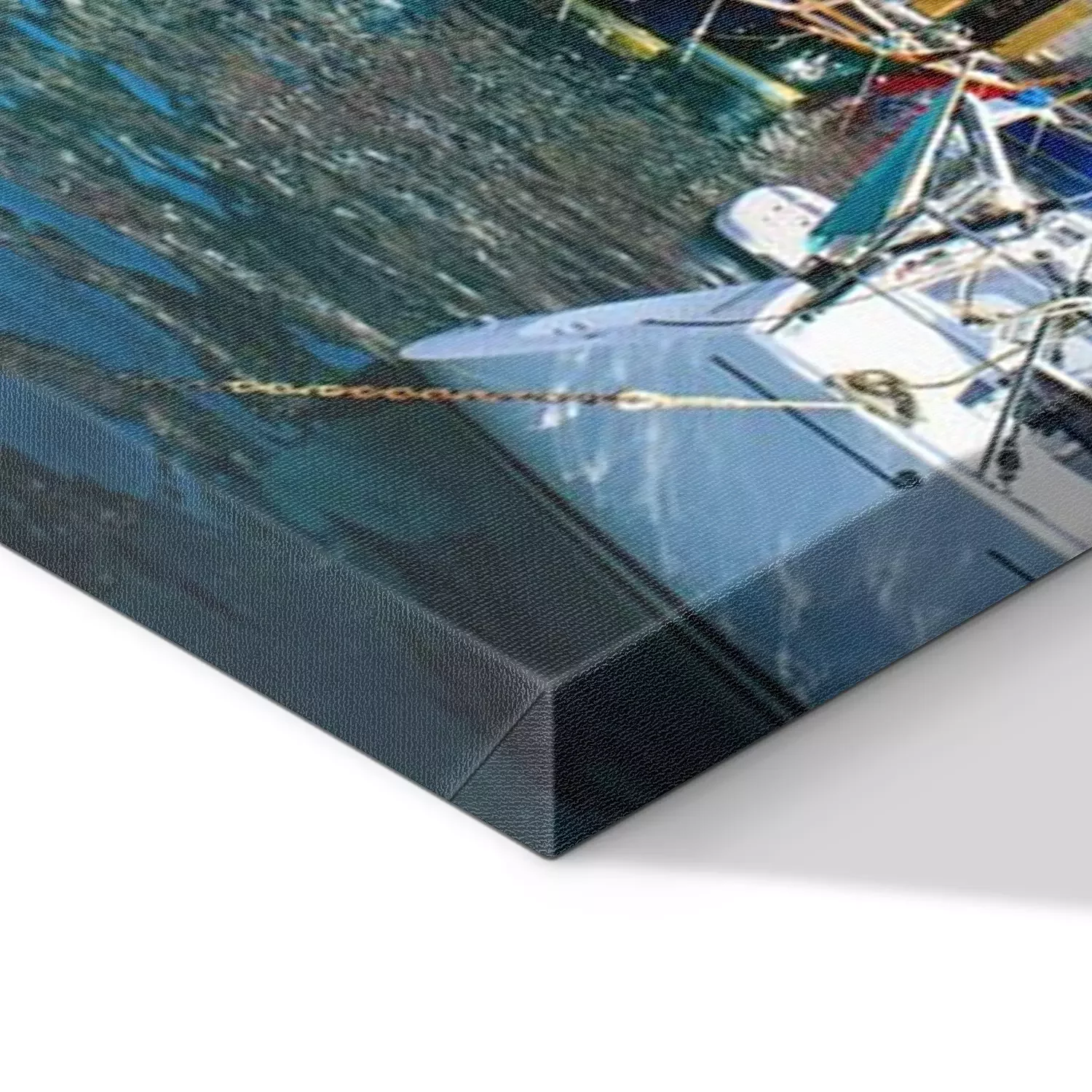 De print wordt aangebracht op hoogwaardig canvas dat op een schildersweefgetouw (spieraam) wordt gespannen. Omdat de print de zijranden bedekt, hoeft het ontwerp niet met een extra kader te worden omlijst. Wij raden ook composities aan die uit meerdere foto's bestaan en zo een coherente compositie vormen.