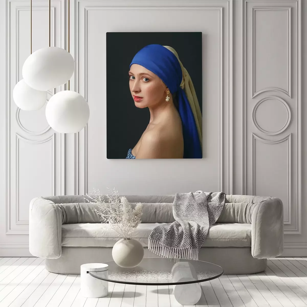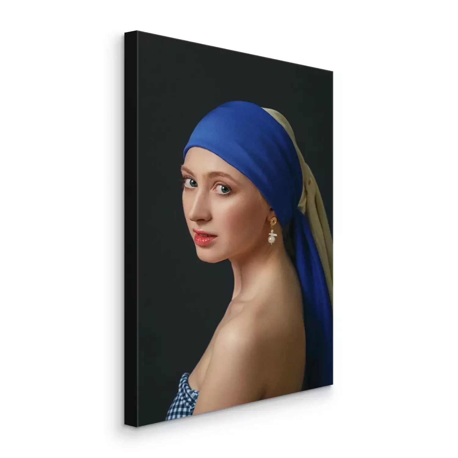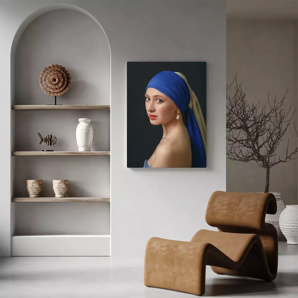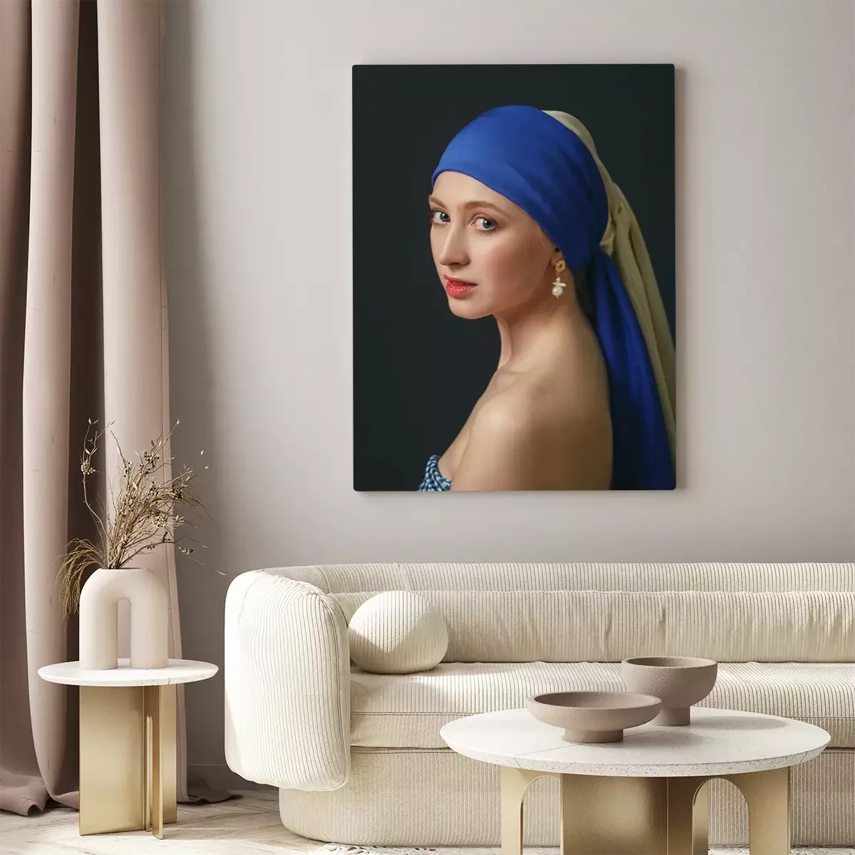 Canvas Portrait of a woman with a pearl earring, inspired by the painting of the great baroque and renaissance artist Jan Vermeer