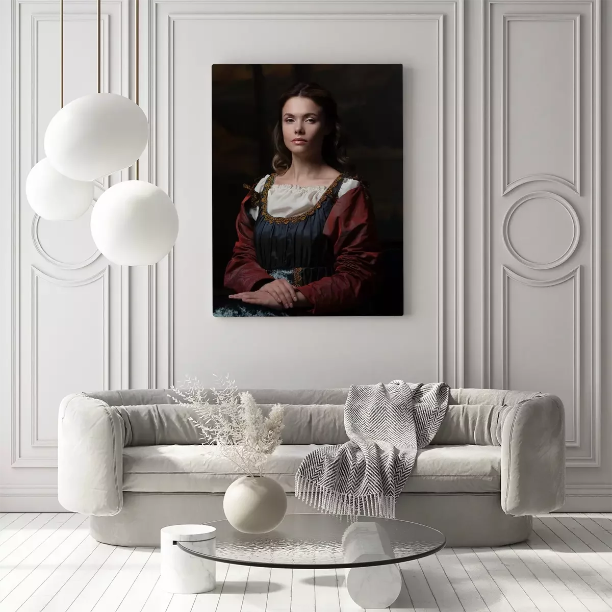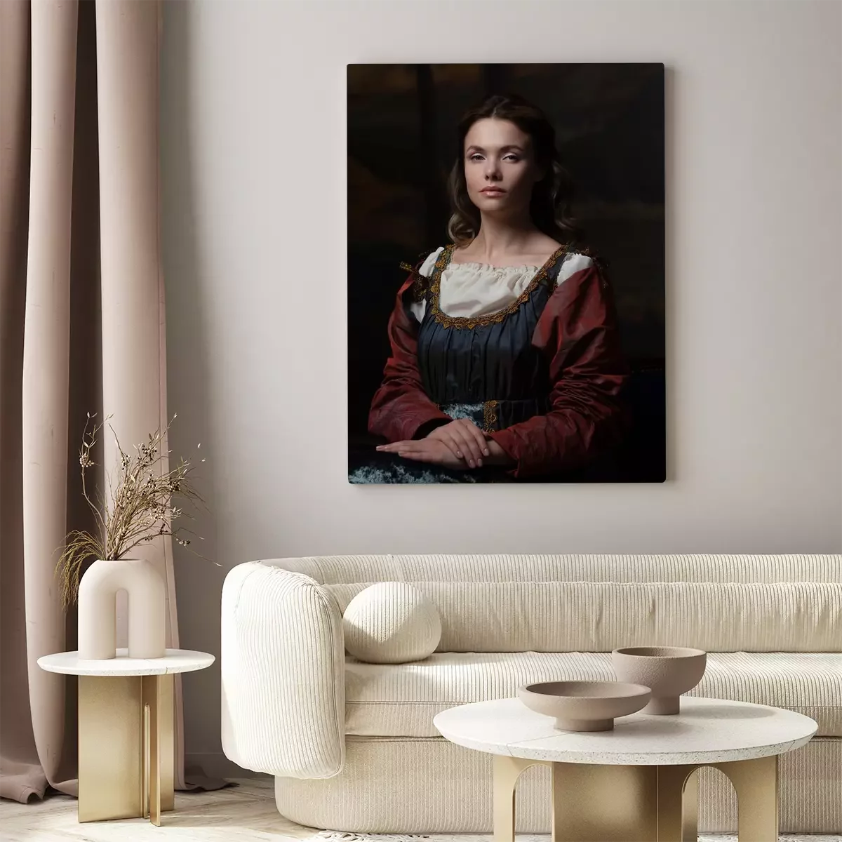 Canvas: Portrait of a young woman in the style of a Renaissance painting.