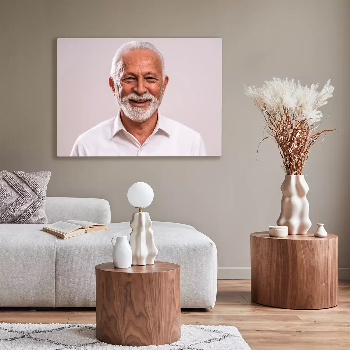 De print wordt aangebracht op hoogwaardig canvas dat op een schildersweefgetouw (spieraam) wordt gespannen. Omdat de print de zijranden bedekt, hoeft het ontwerp niet met een extra kader te worden omlijst. Wij raden ook composities aan die uit meerdere foto's bestaan en zo een coherente compositie vormen.