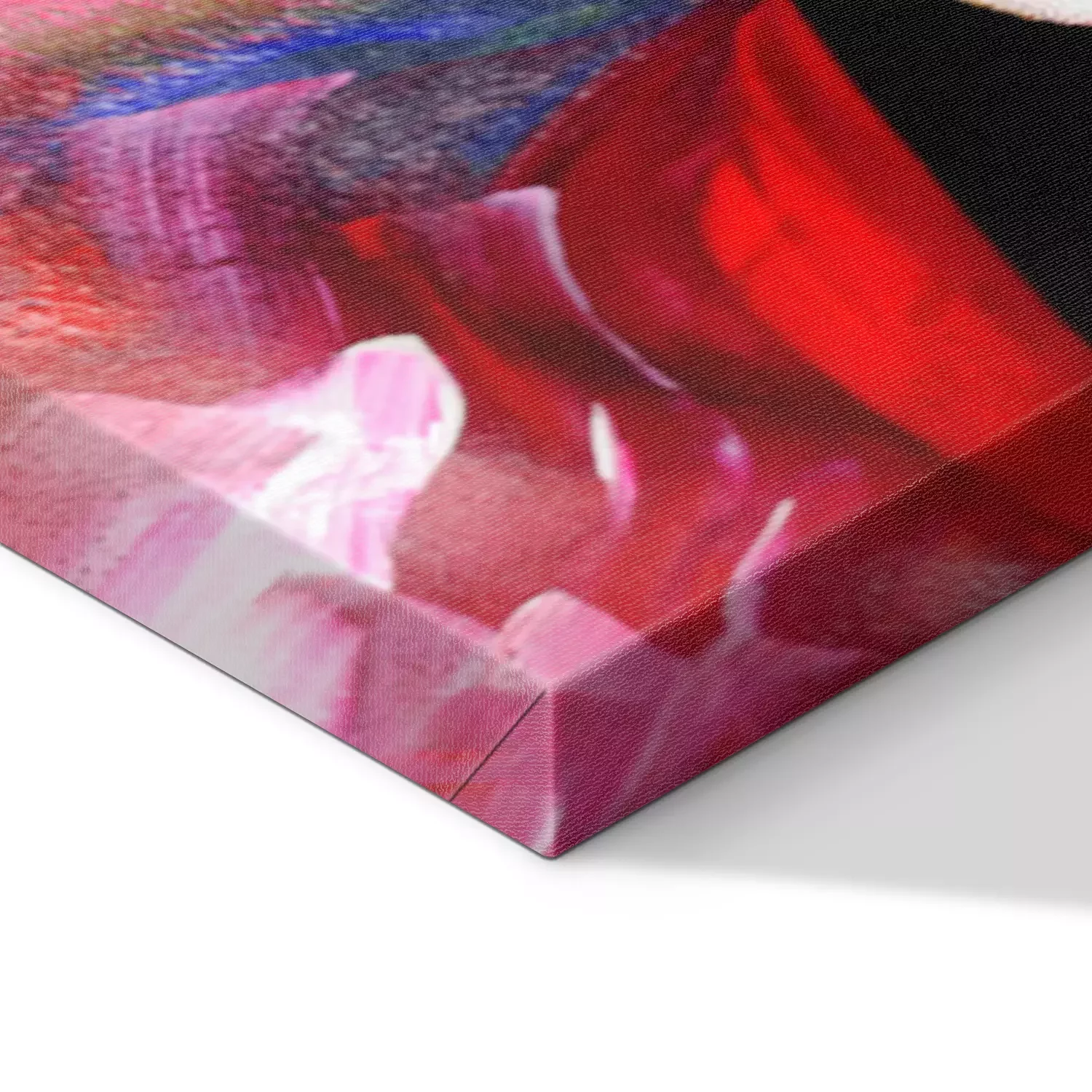 De print wordt aangebracht op hoogwaardig canvas dat op een schildersweefgetouw (spieraam) wordt gespannen. Omdat de print de zijranden bedekt, hoeft het ontwerp niet met een extra kader te worden omlijst. Wij raden ook composities aan die uit meerdere foto's bestaan en zo een coherente compositie vormen.