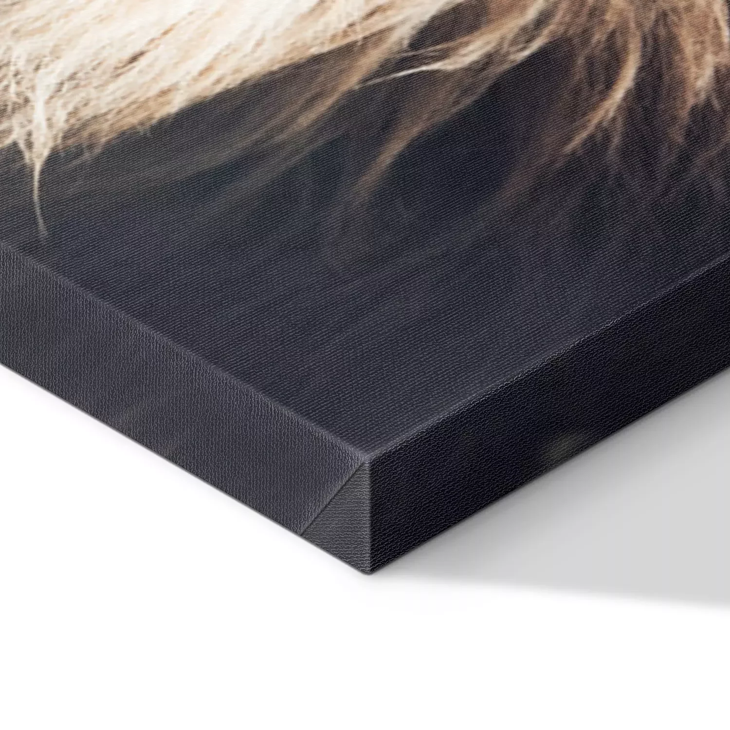 De print wordt aangebracht op hoogwaardig canvas dat op een schildersweefgetouw (spieraam) wordt gespannen. Omdat de print de zijranden bedekt, hoeft het ontwerp niet met een extra kader te worden omlijst. Wij raden ook composities aan die uit meerdere foto's bestaan en zo een coherente compositie vormen.