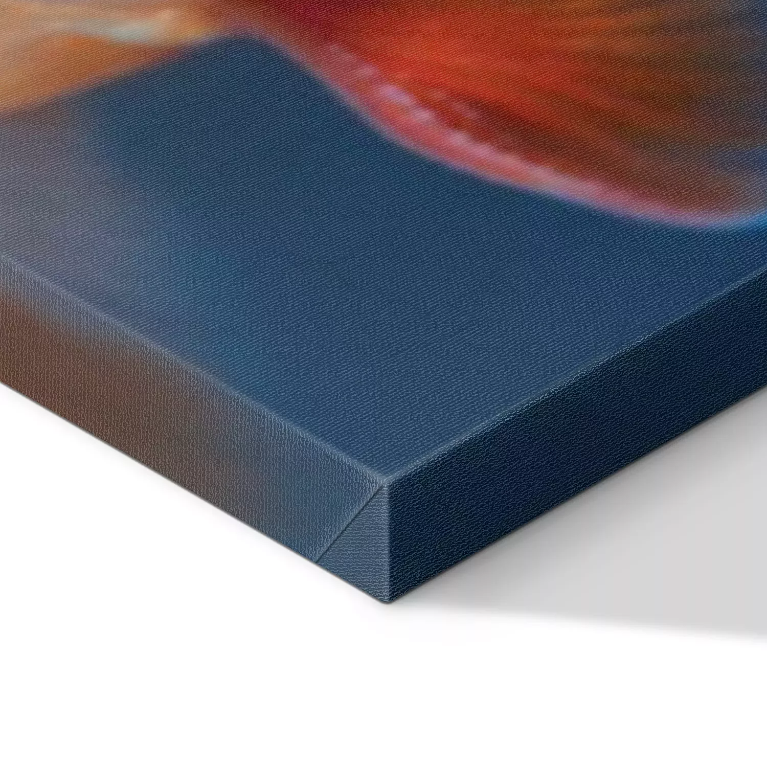 De print wordt aangebracht op hoogwaardig canvas dat op een schildersweefgetouw (spieraam) wordt gespannen. Omdat de print de zijranden bedekt, hoeft het ontwerp niet met een extra kader te worden omlijst. Wij raden ook composities aan die uit meerdere foto's bestaan en zo een coherente compositie vormen.