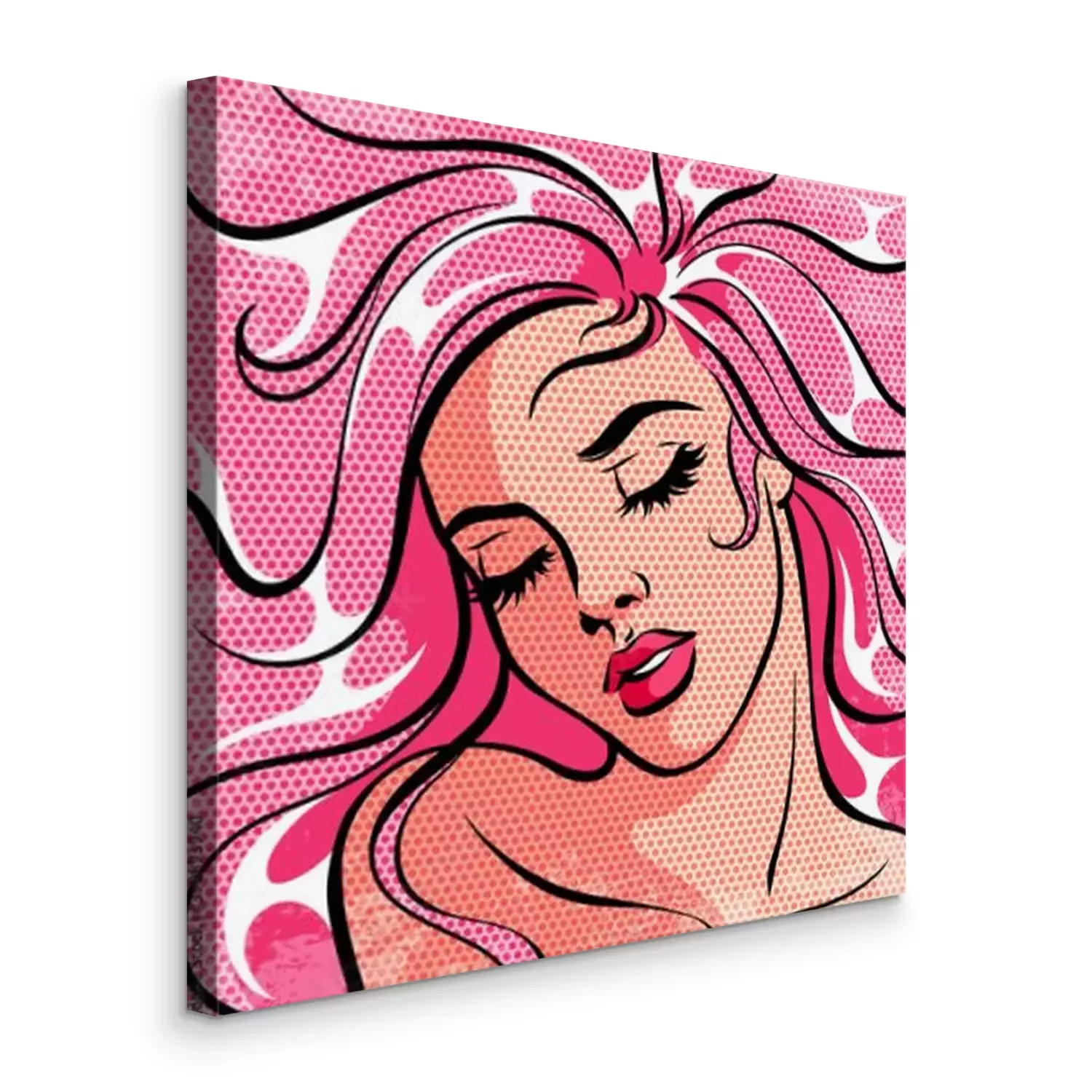 Canvas: Portret van een vrouw in de stijl van Roy Lichtenstein