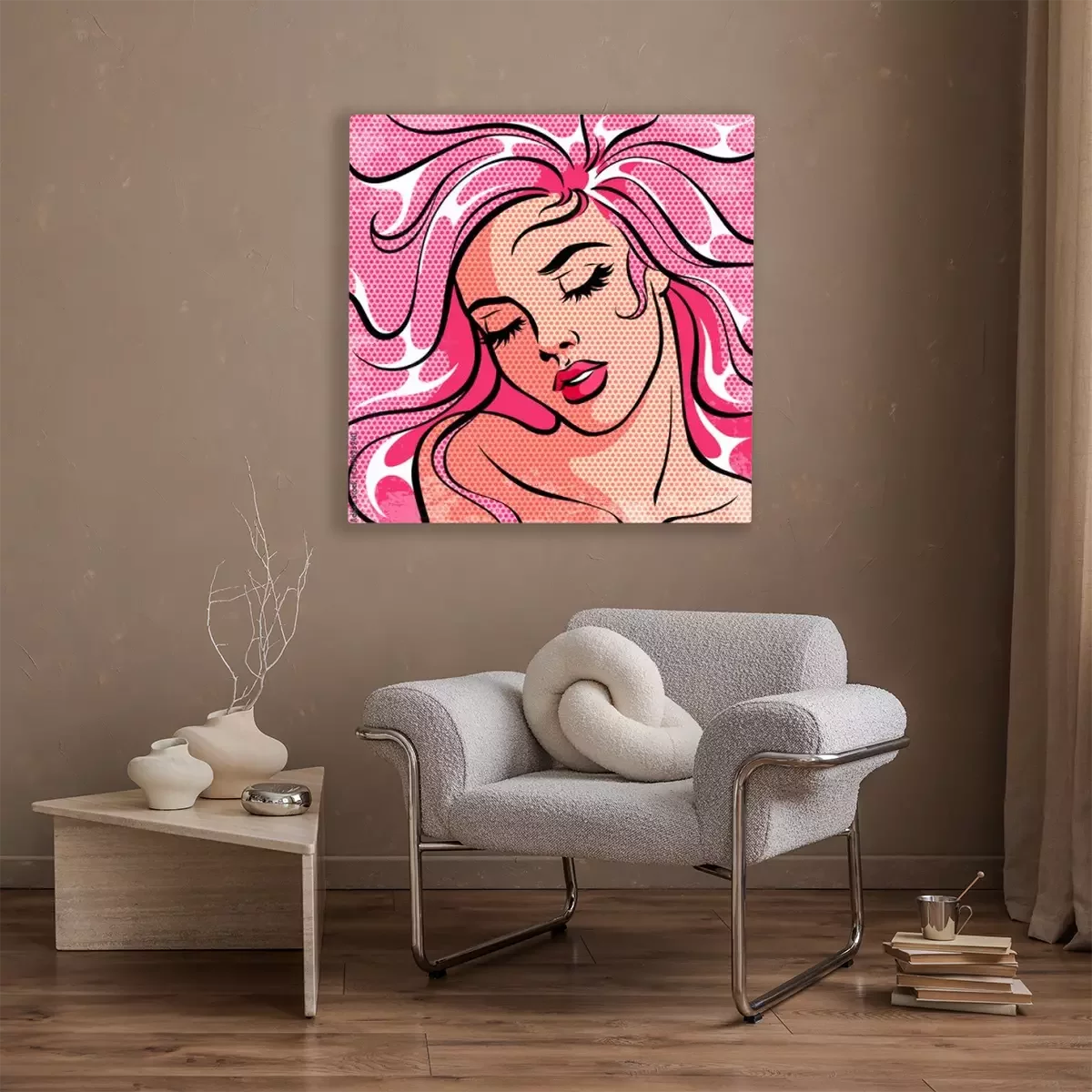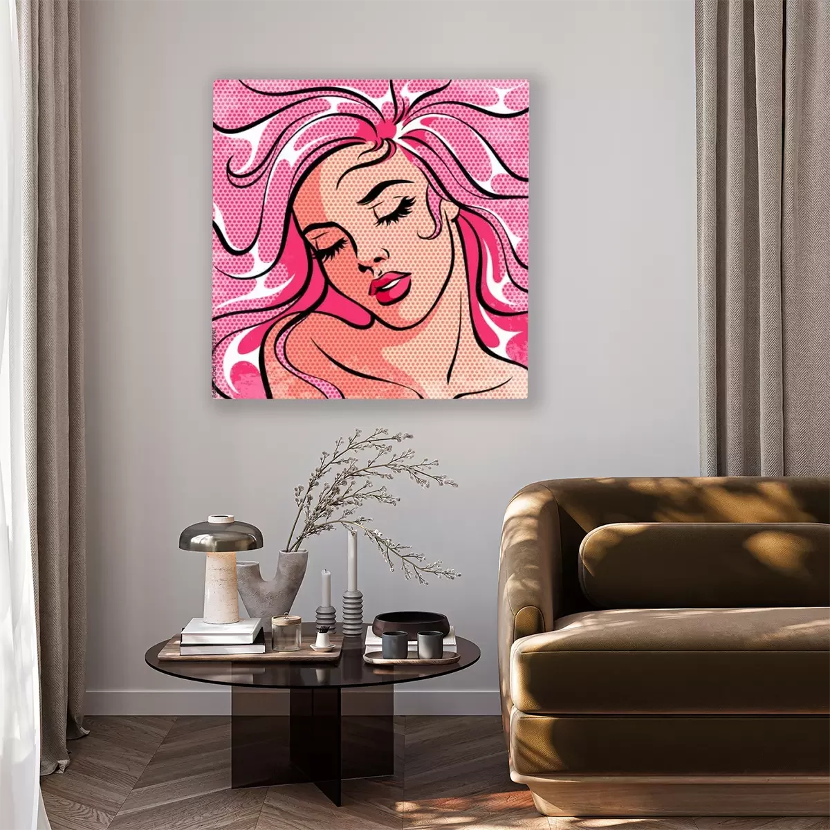 Canvas Portret van een vrouw in de stijl van Roy Lichtenstein