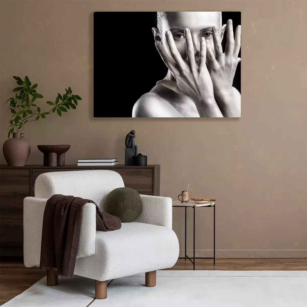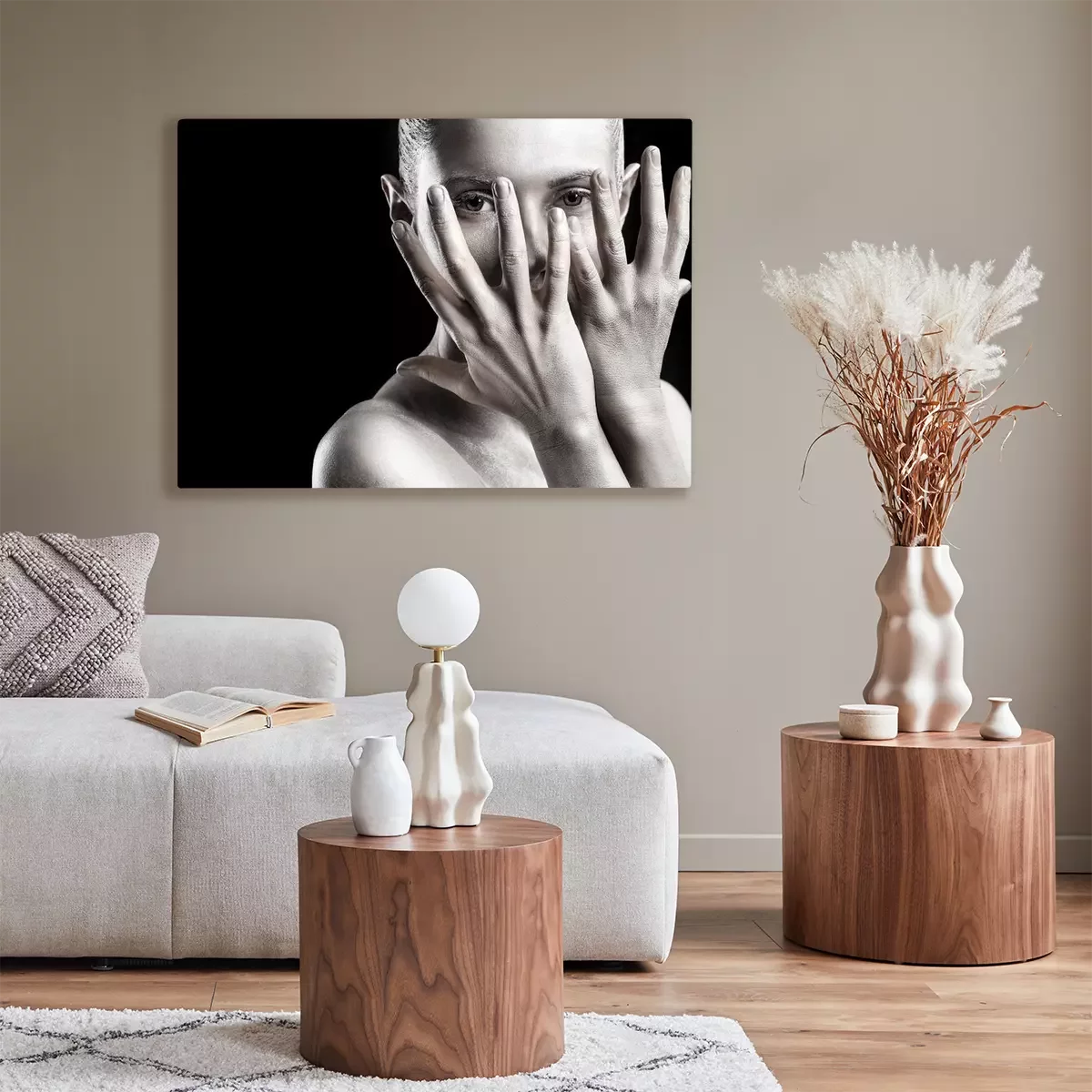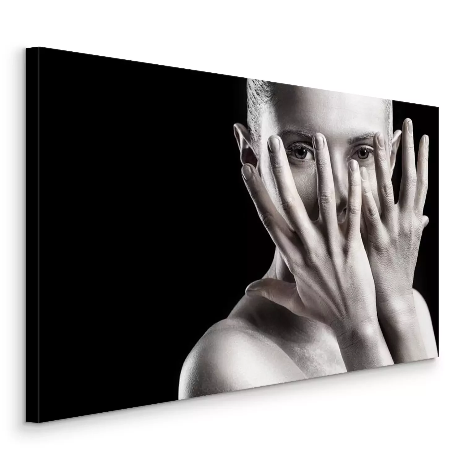 Canvas: Portret van een vrouw verborgen achter haar handen