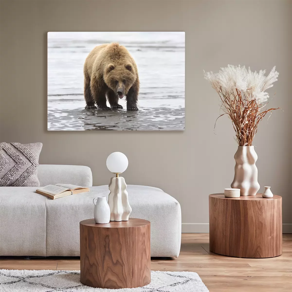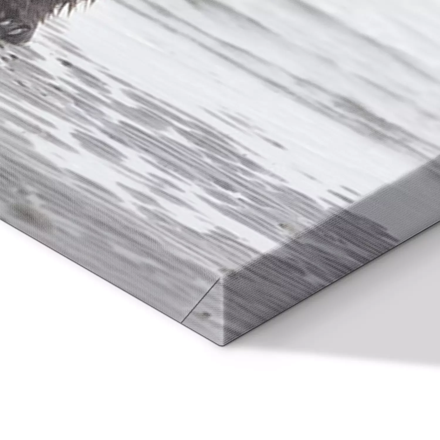 De print wordt aangebracht op hoogwaardig canvas dat op een schildersweefgetouw (spieraam) wordt gespannen. Omdat de print de zijranden bedekt, hoeft het ontwerp niet met een extra kader te worden omlijst. Wij raden ook composities aan die uit meerdere foto's bestaan en zo een coherente compositie vormen.