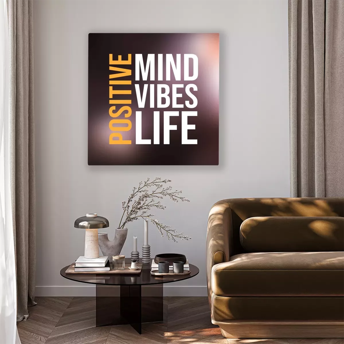 Canvas: positive. Mind, vibes, life. Life quote with modern background vector
