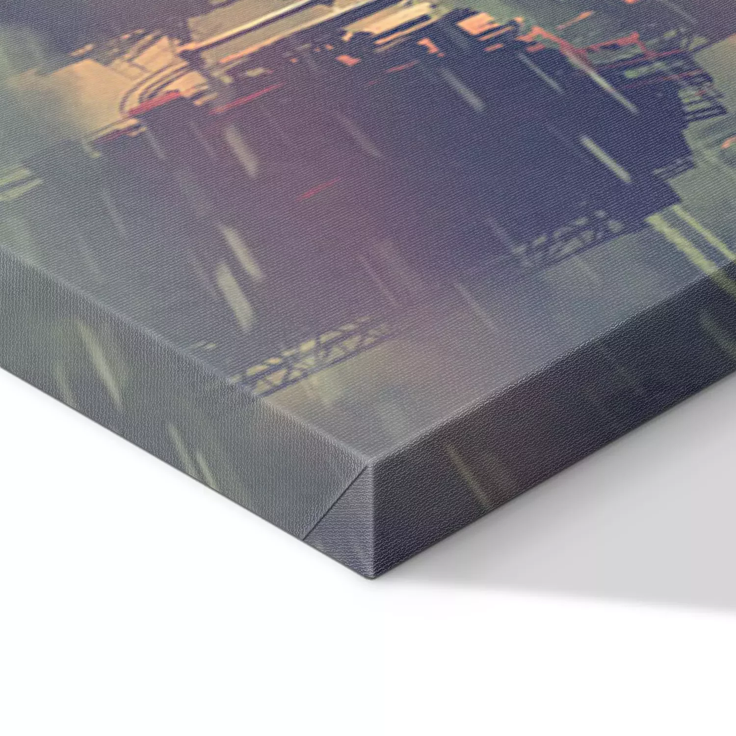 De print wordt aangebracht op hoogwaardig canvas dat op een schildersweefgetouw (spieraam) wordt gespannen. Omdat de print de zijranden bedekt, hoeft het ontwerp niet met een extra kader te worden omlijst. Wij raden ook composities aan die uit meerdere foto's bestaan en zo een coherente compositie vormen.
