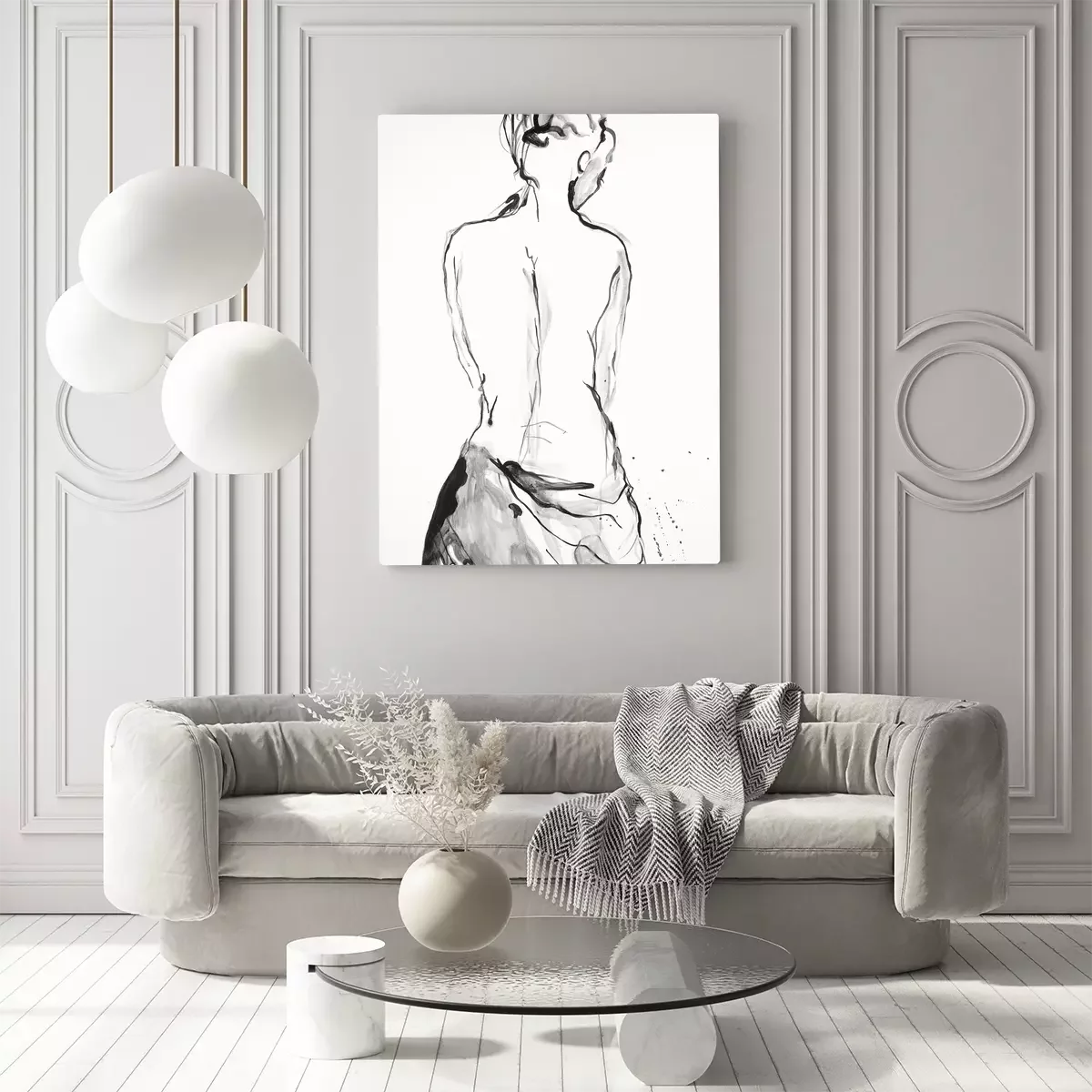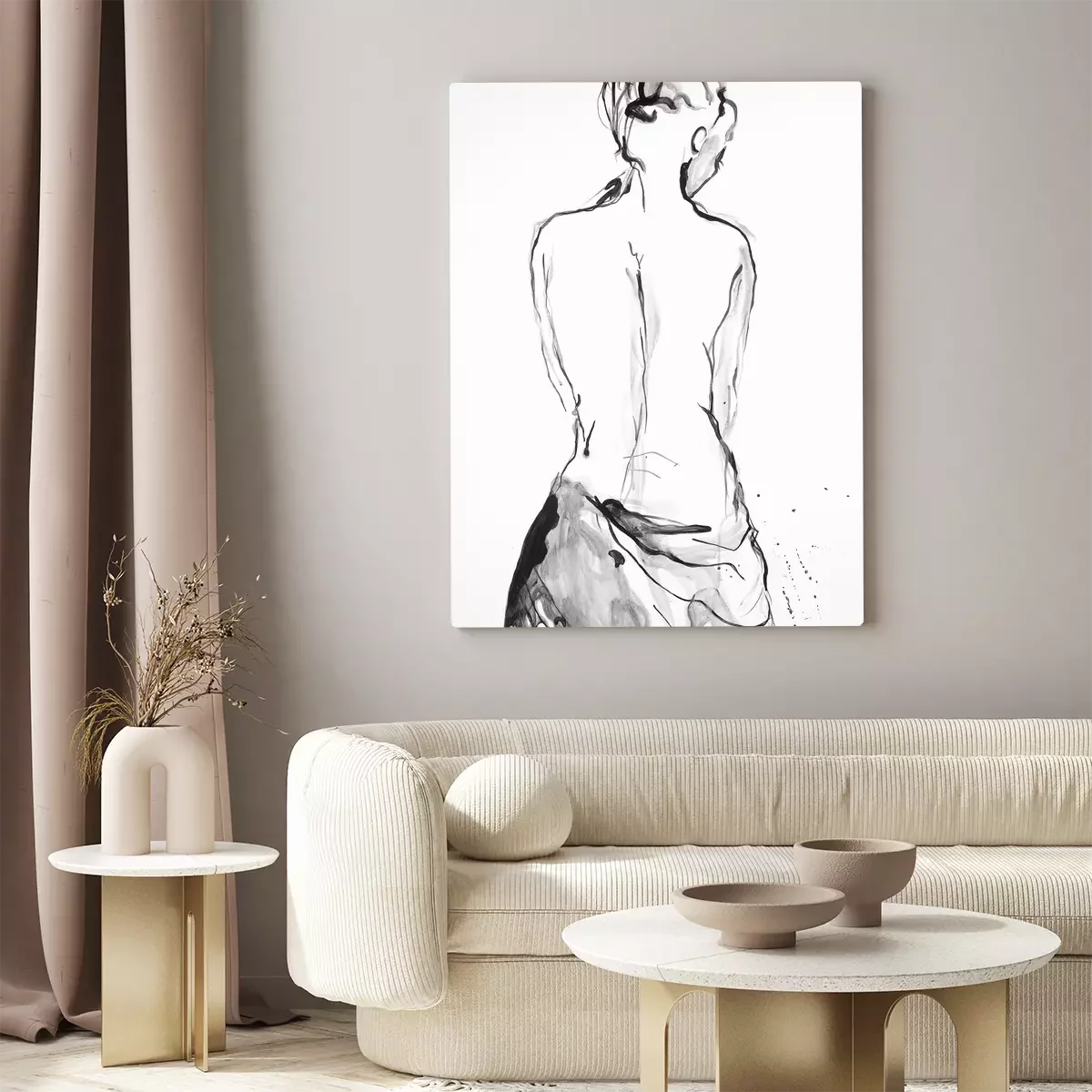 Potloodtekening van een vrouw met haar rug naar haar toe