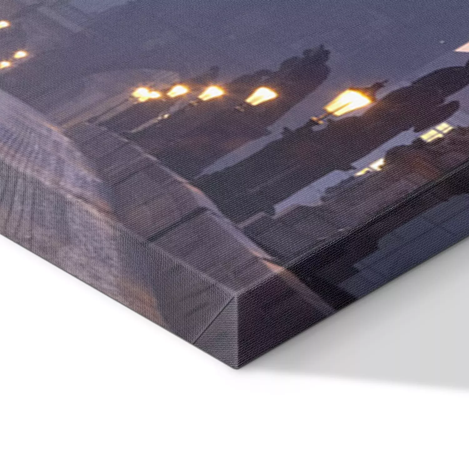 De print wordt aangebracht op hoogwaardig canvas dat op een schildersweefgetouw (spieraam) wordt gespannen. Omdat de print de zijranden bedekt, hoeft het ontwerp niet met een extra kader te worden omlijst. Wij raden ook composities aan die uit meerdere foto's bestaan en zo een coherente compositie vormen.