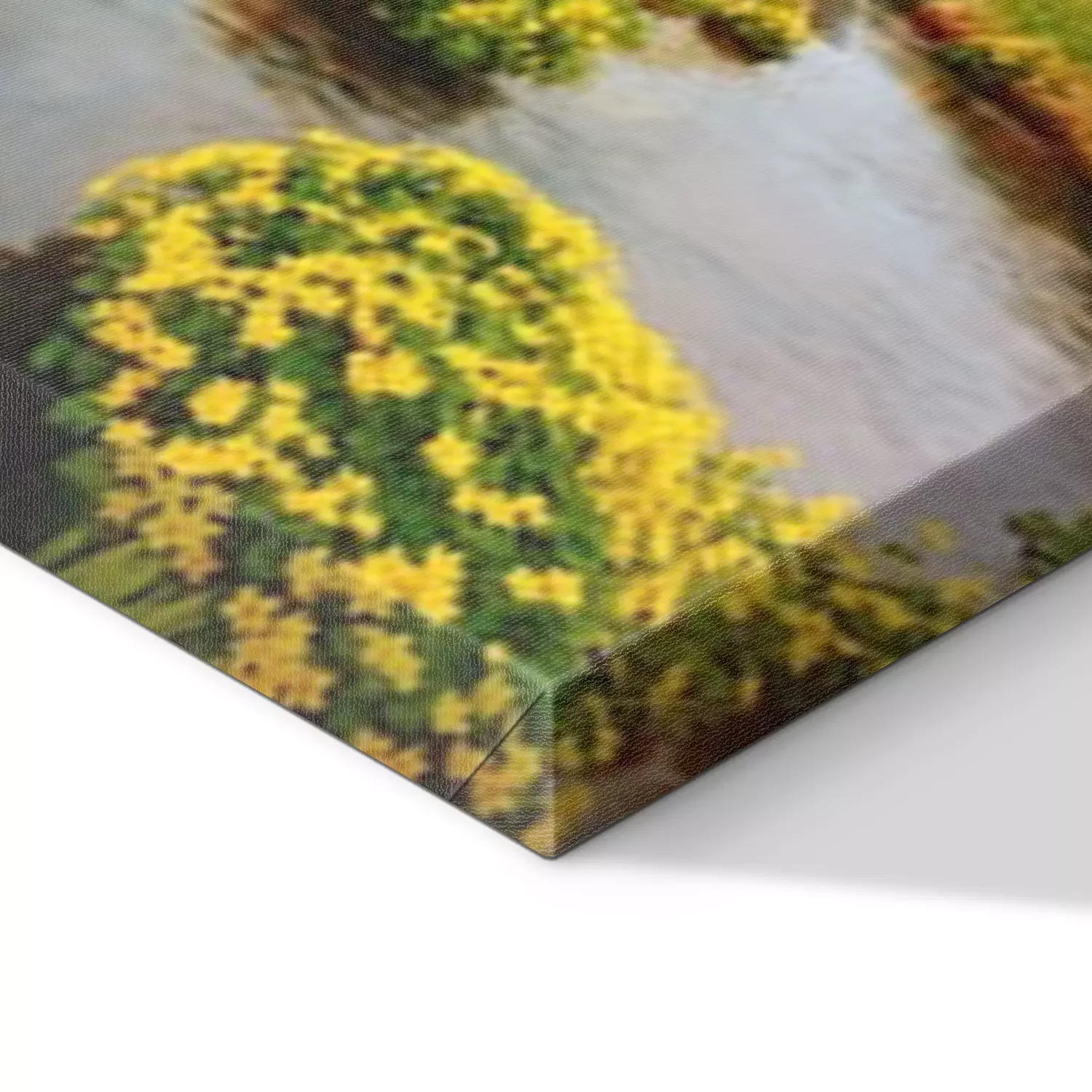 De print wordt aangebracht op hoogwaardig canvas dat op een schildersweefgetouw (spieraam) wordt gespannen. Omdat de print de zijranden bedekt, hoeft het ontwerp niet met een extra kader te worden omlijst. Wij raden ook composities aan die uit meerdere foto's bestaan en zo een coherente compositie vormen.