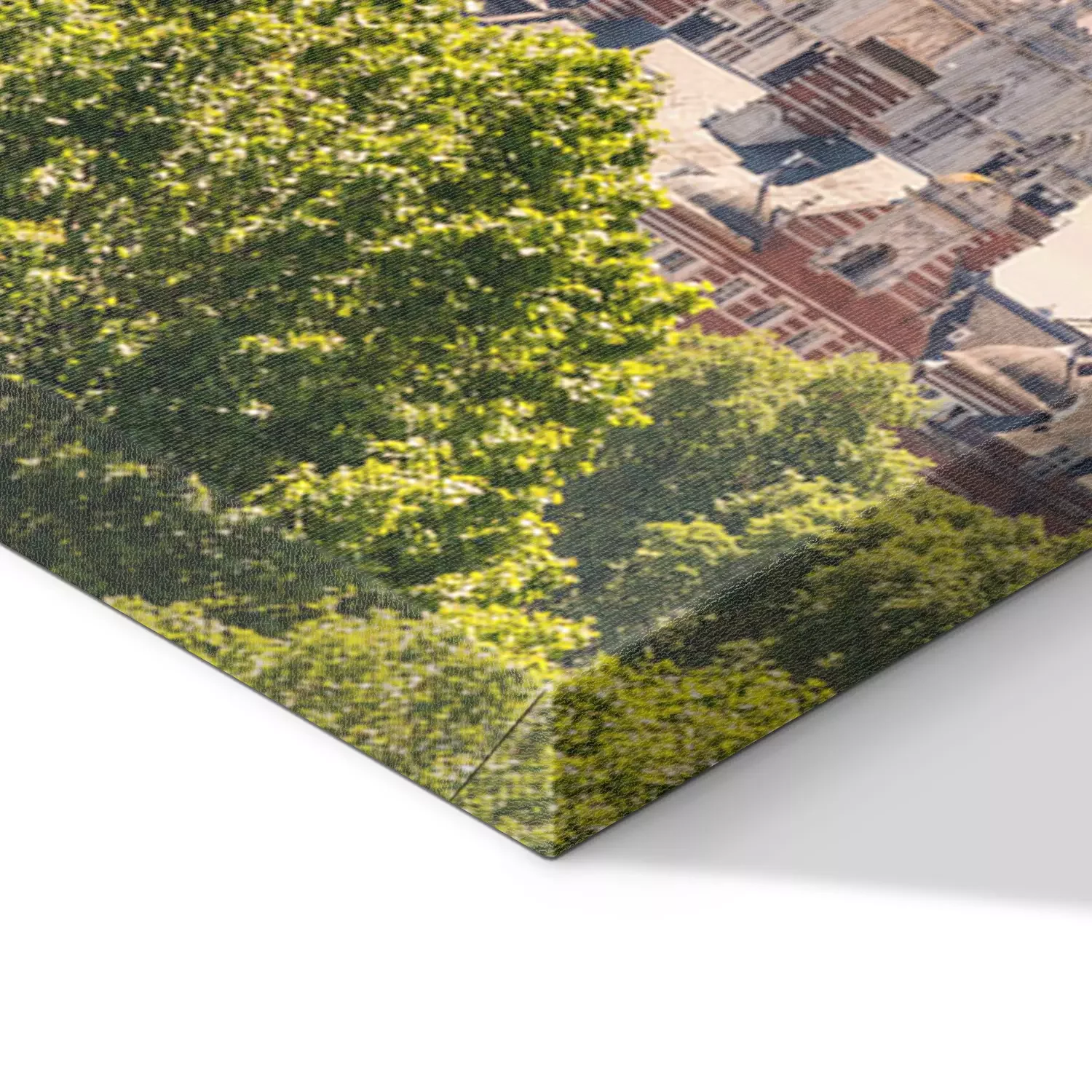 De print wordt aangebracht op hoogwaardig canvas dat op een schildersweefgetouw (spieraam) wordt gespannen. Omdat de print de zijranden bedekt, hoeft het ontwerp niet met een extra kader te worden omlijst. Wij raden ook composities aan die uit meerdere foto's bestaan en zo een coherente compositie vormen.