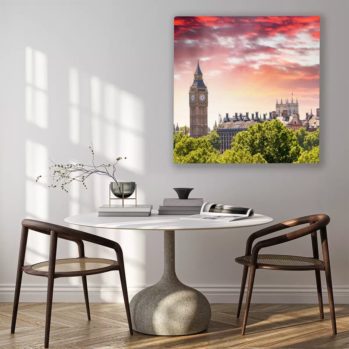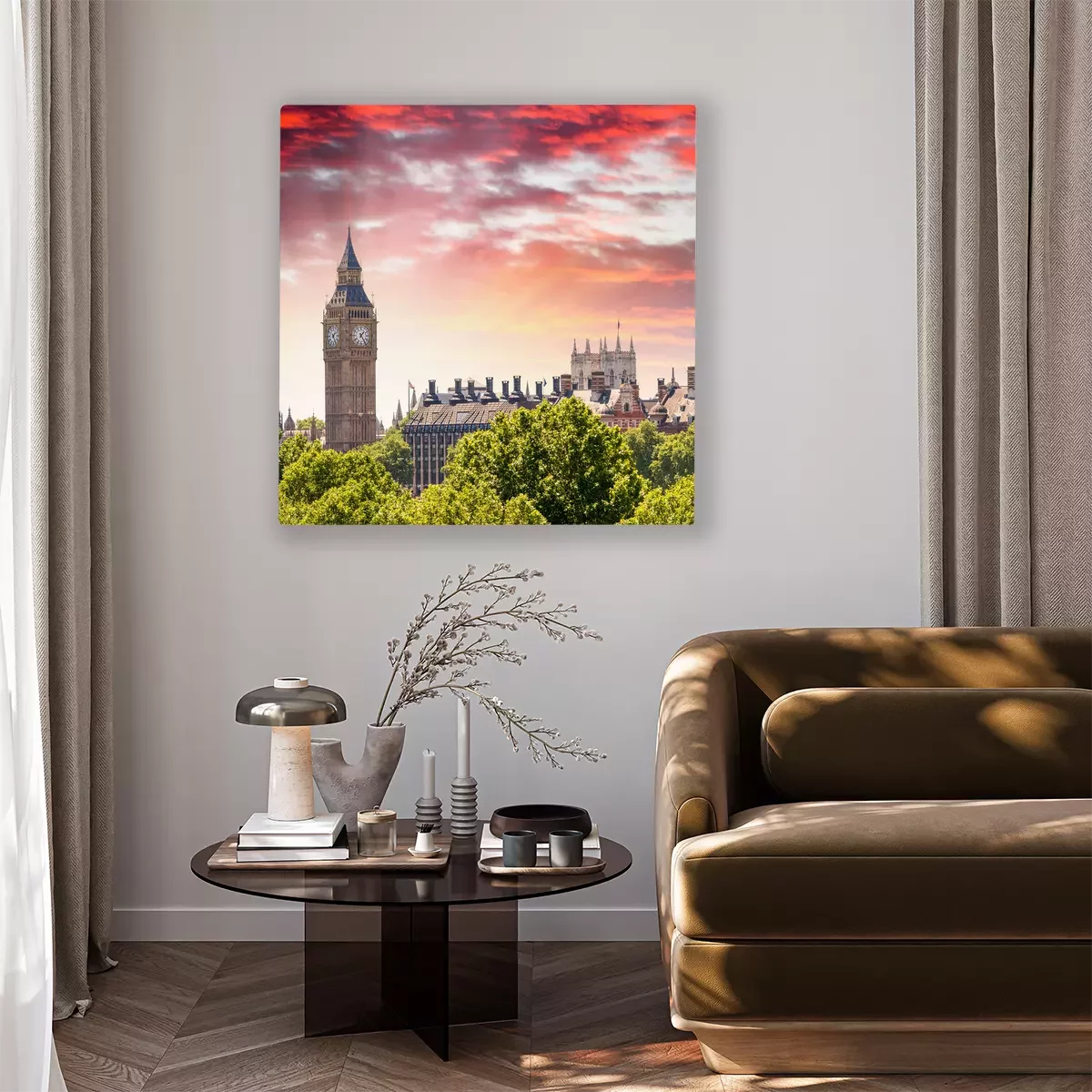 Canvas: Prachtig uitzicht op de zonsondergang van de Houses of Parliament - Londen