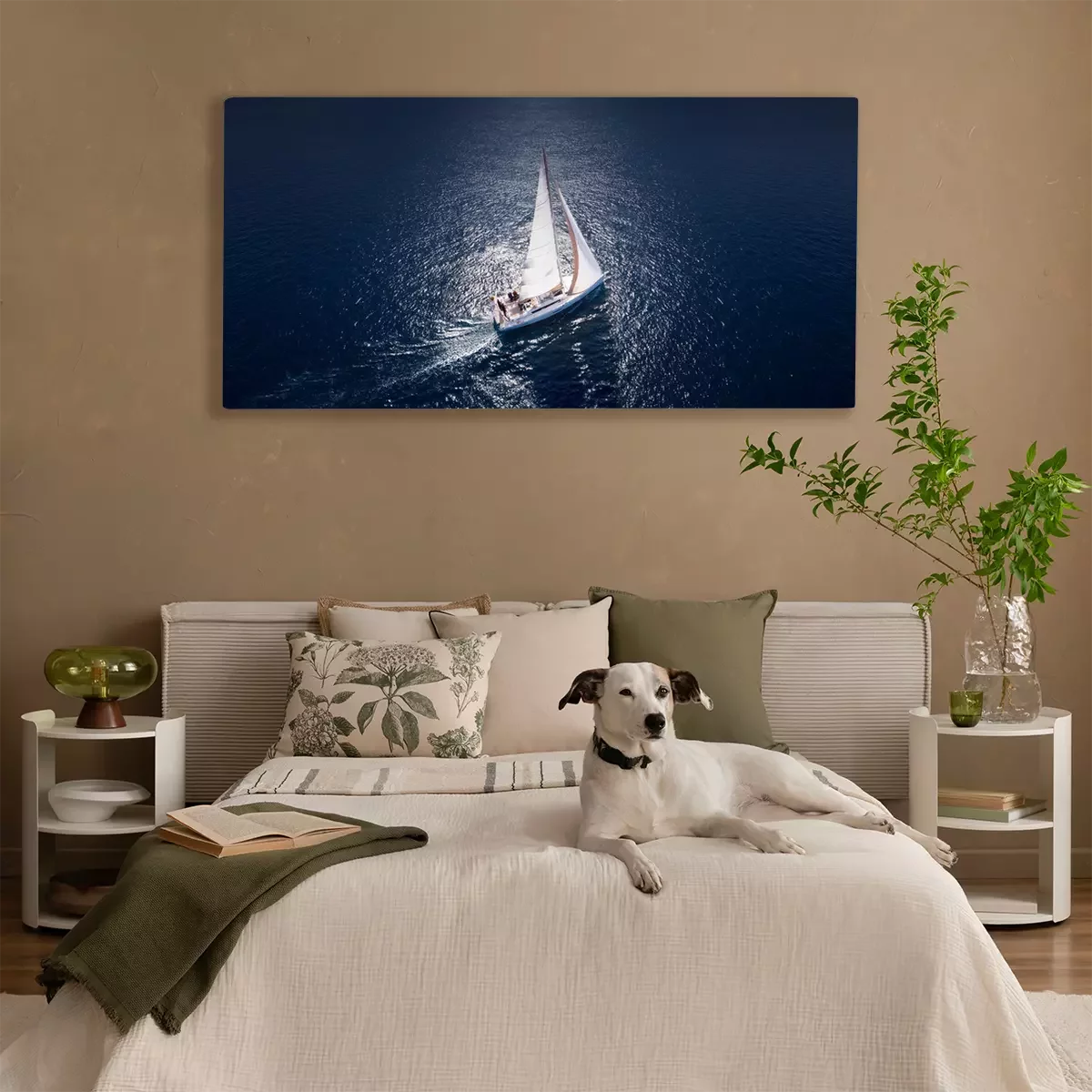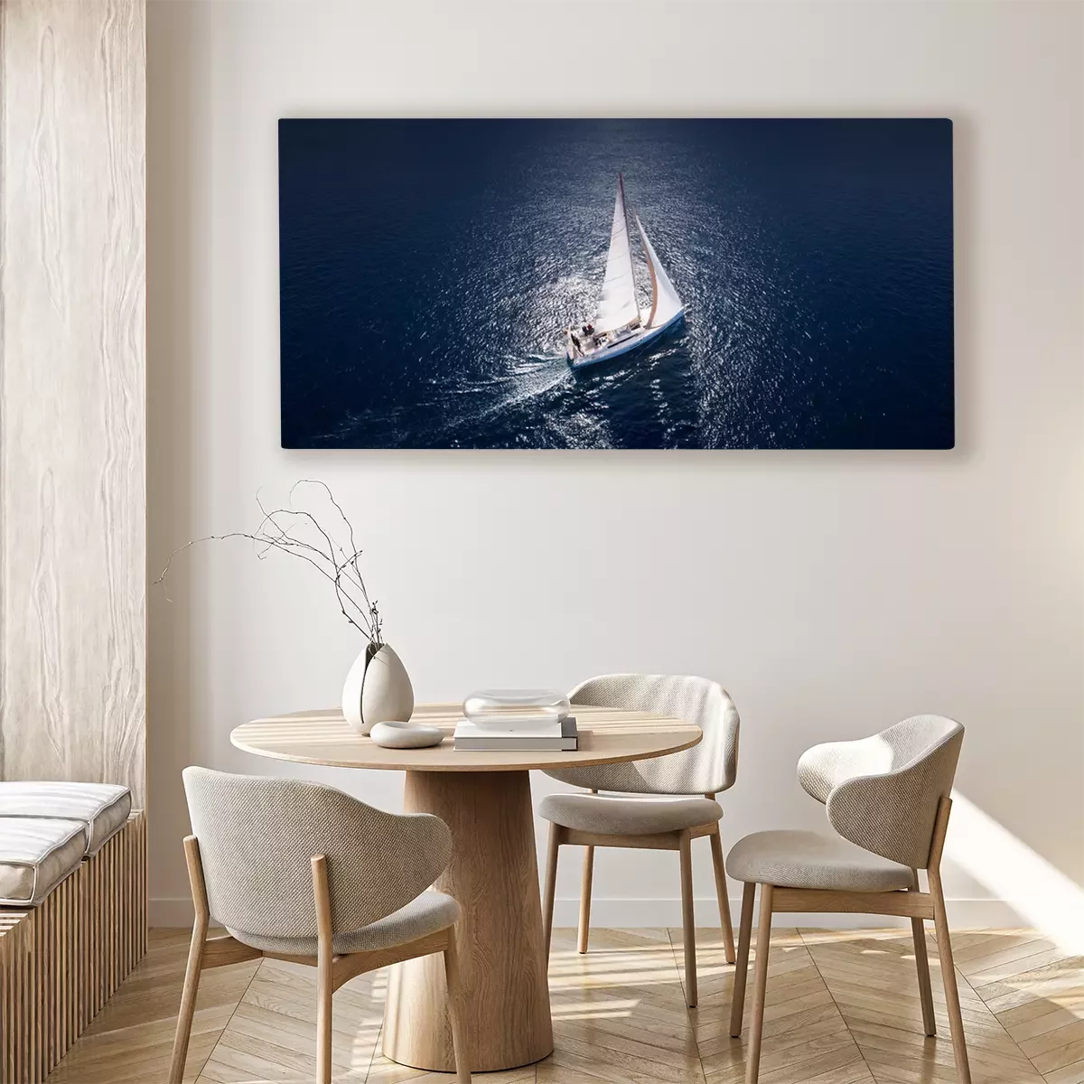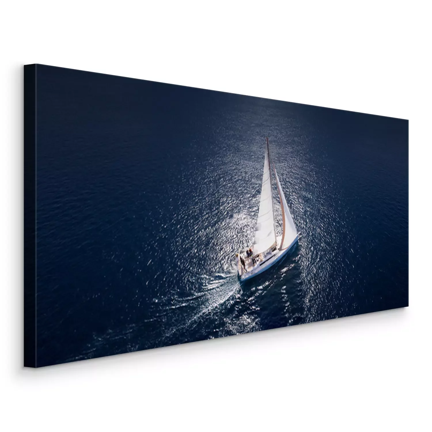 Canvas: Prachtig uitzicht op jacht zeilen in open zee op winderige dag. Drone view - bird's eye angle.
