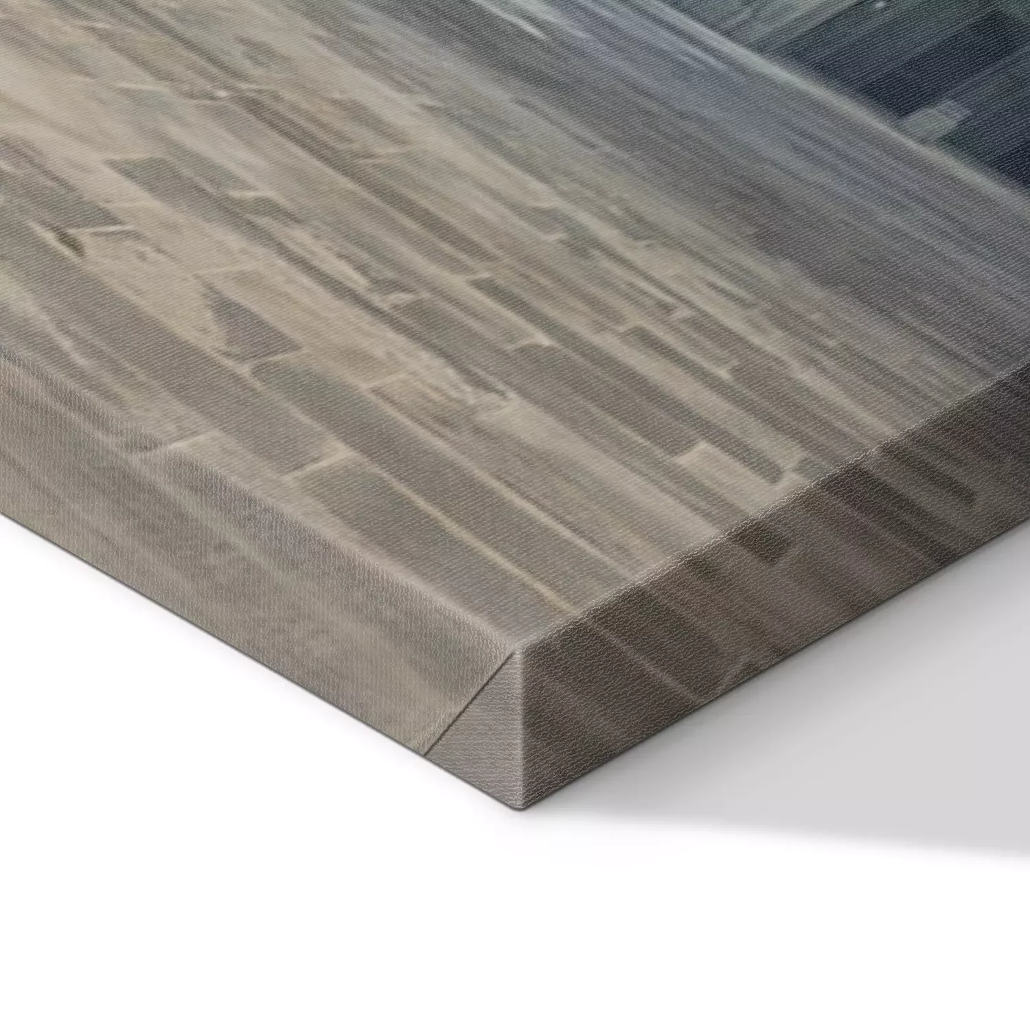 De print wordt aangebracht op hoogwaardig canvas dat op een schildersweefgetouw (spieraam) wordt gespannen. Omdat de print de zijranden bedekt, hoeft het ontwerp niet met een extra kader te worden omlijst. Wij raden ook composities aan die uit meerdere foto's bestaan en zo een coherente compositie vormen.
