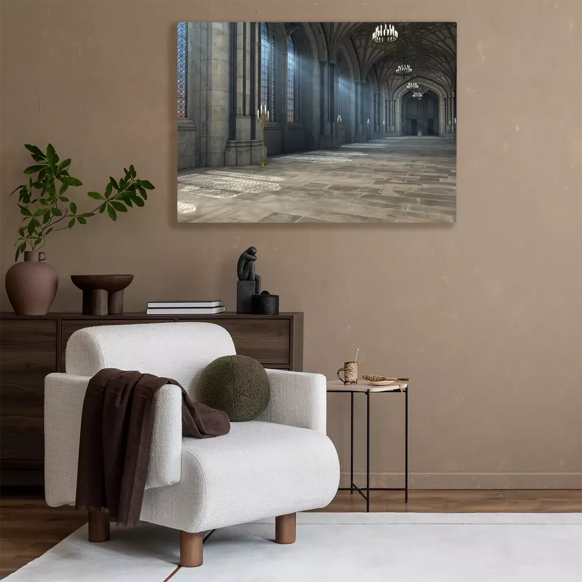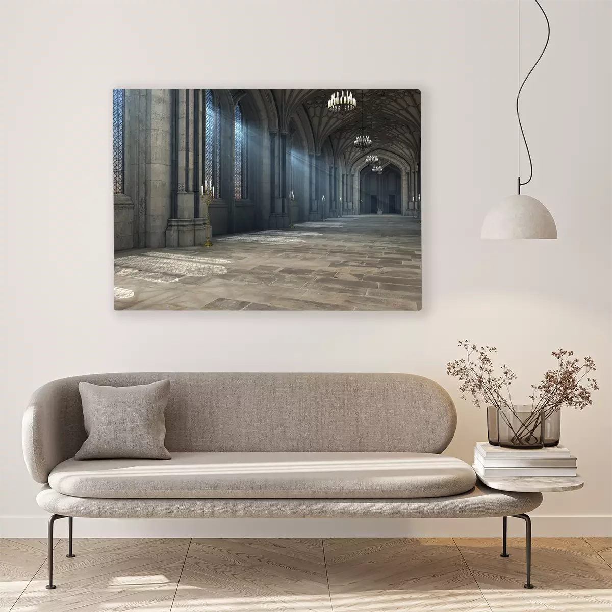 Canvas: Prachtig uitzicht van gotische kathedraal interieur 3d CG illustratie