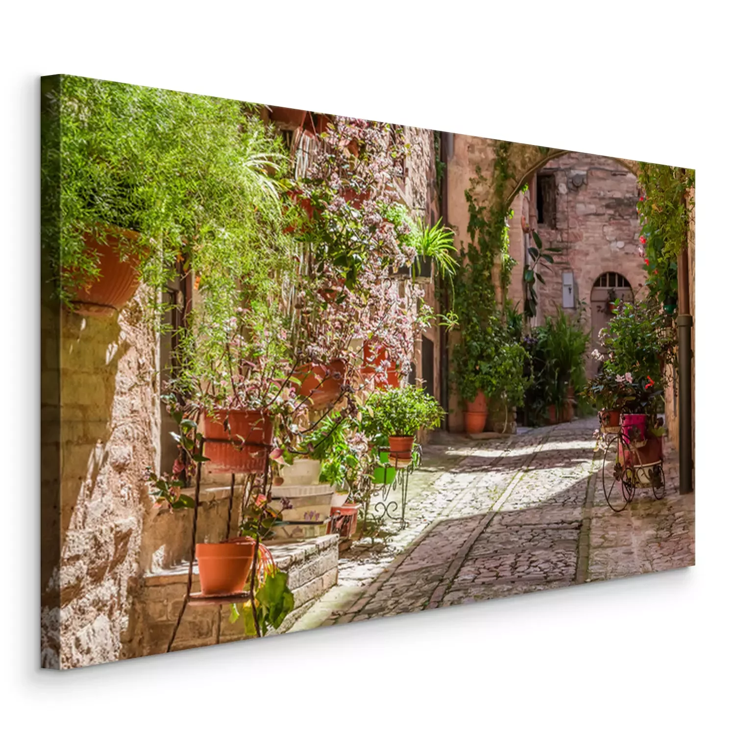 Canvas: Prachtig versierde veranda in kleine stad in Italië in de zomer, Umbrië