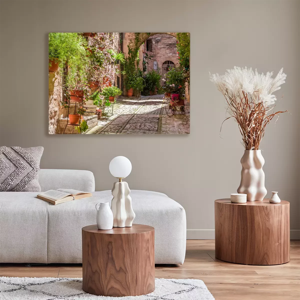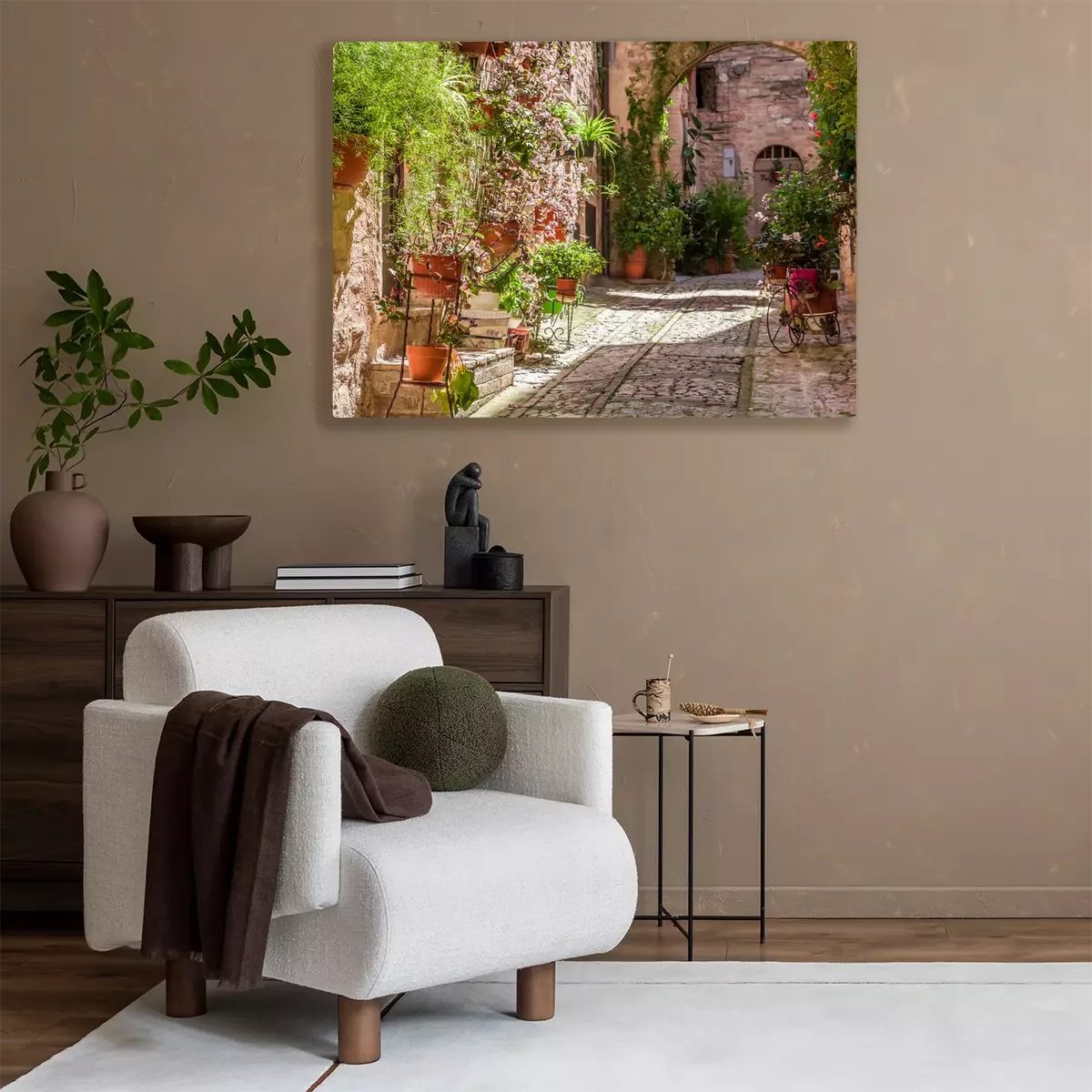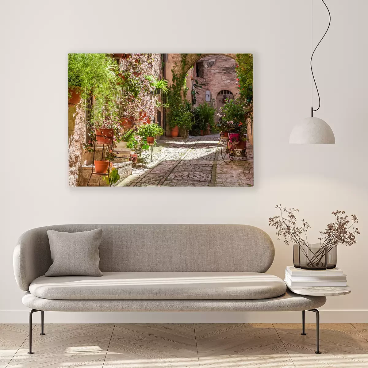 Canvas Prachtig versierde veranda in kleine stad in Italië in de zomer, Umbrië