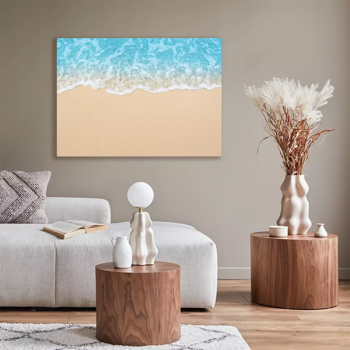 Canvas: Prachtig zandstrand en zachtblauwe oceaan golven