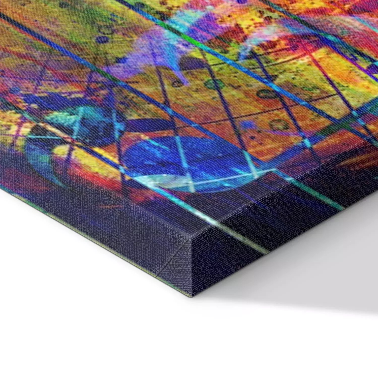 De print wordt aangebracht op hoogwaardig canvas dat op een schildersweefgetouw (spieraam) wordt gespannen. Omdat de print de zijranden bedekt, hoeft het ontwerp niet met een extra kader te worden omlijst. Wij raden ook composities aan die uit meerdere foto's bestaan en zo een coherente compositie vormen.