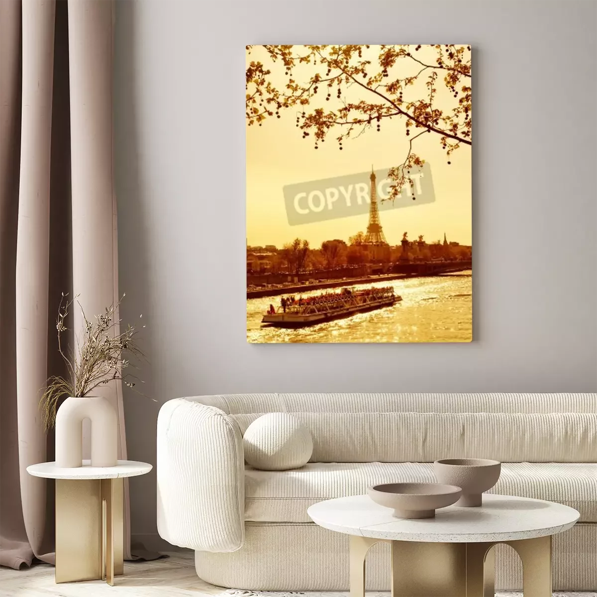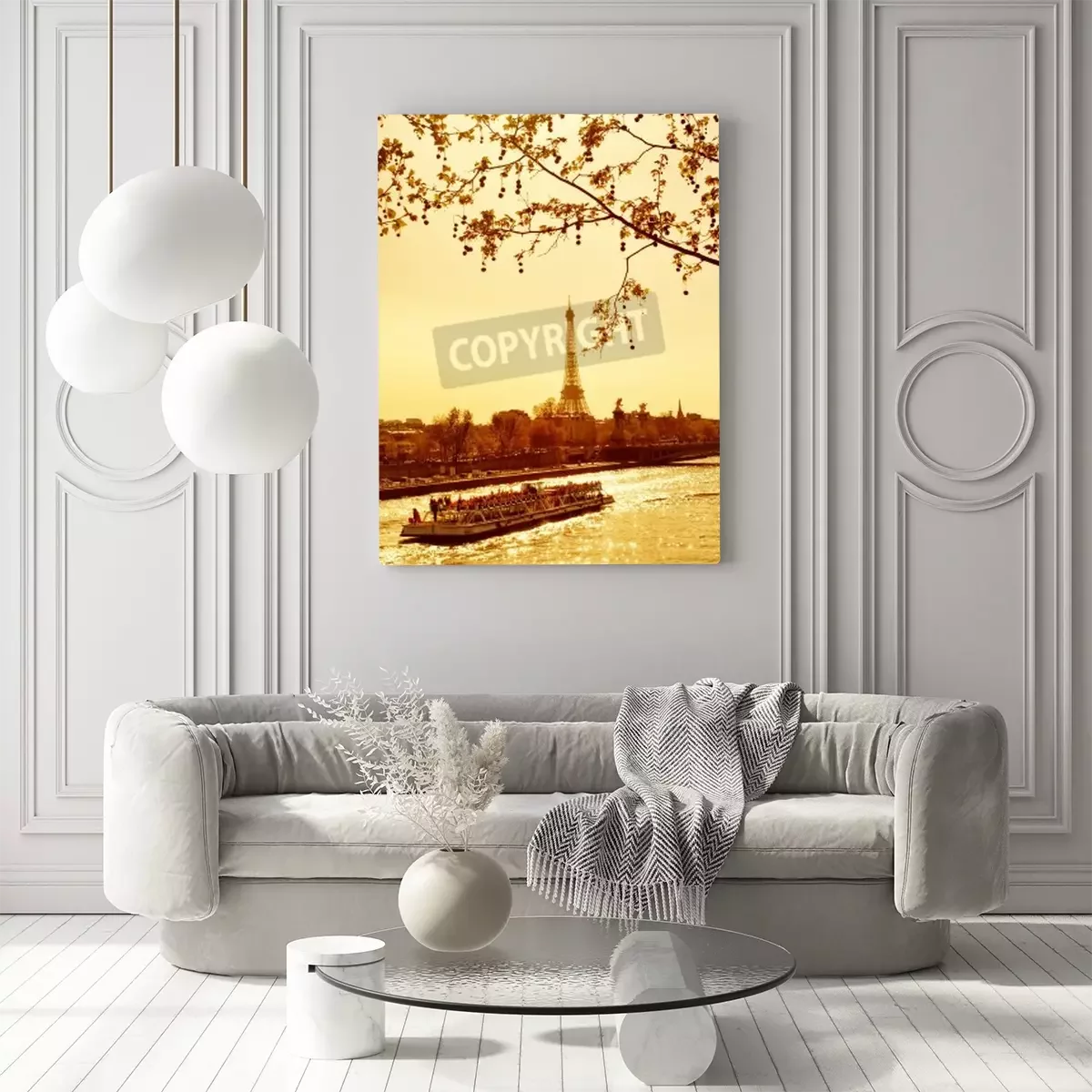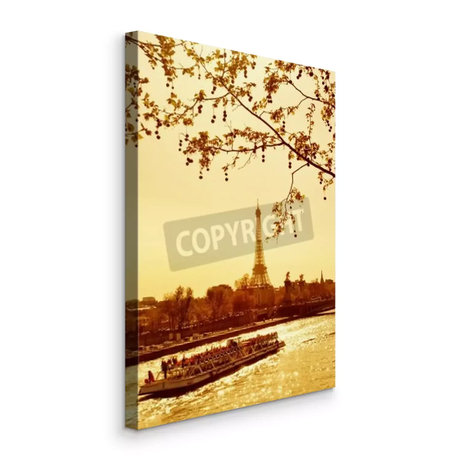 Canvas: Prachtige gouden zonsondergang in rivier de Seine, Parijs, Frankrijk