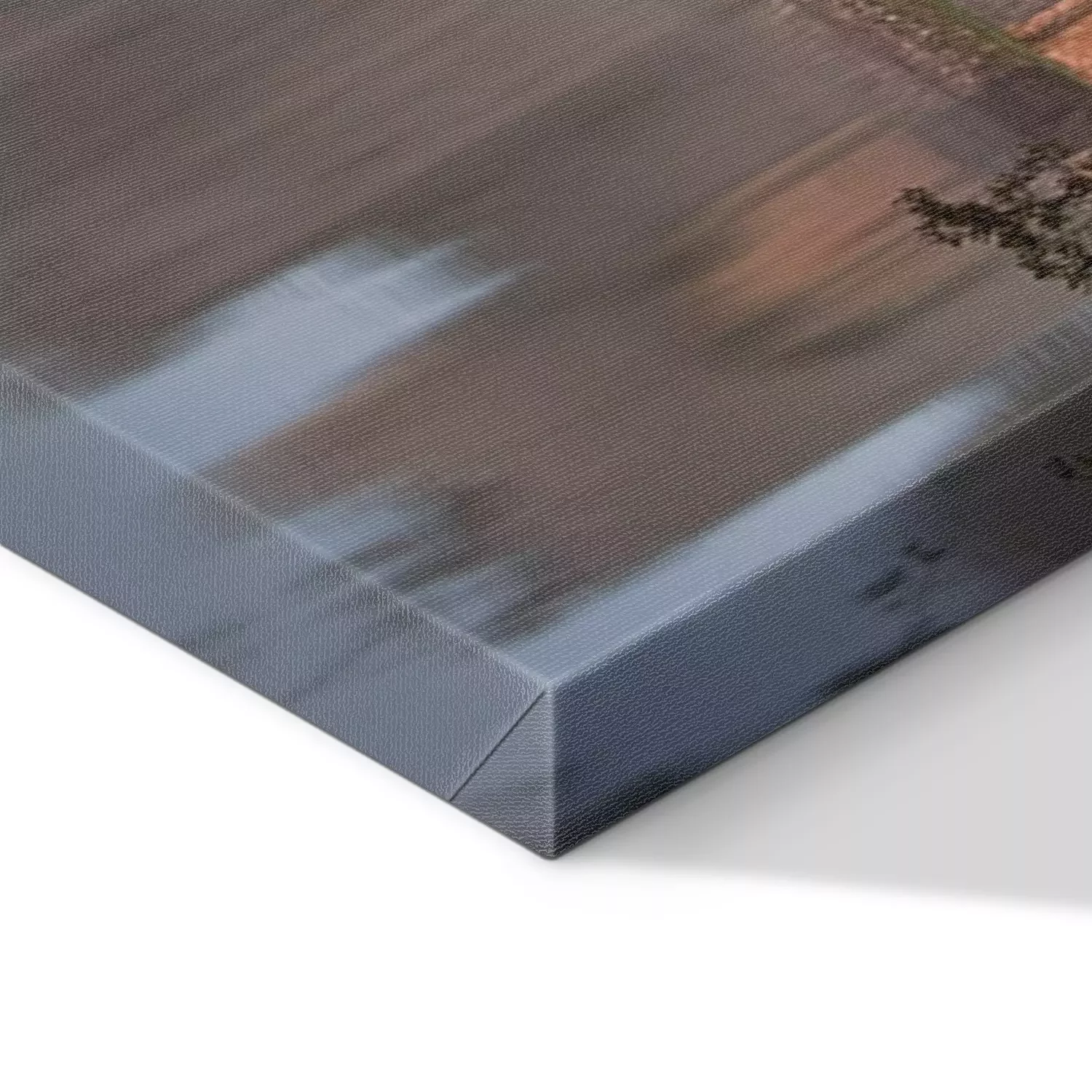 De print wordt aangebracht op hoogwaardig canvas dat op een schildersweefgetouw (spieraam) wordt gespannen. Omdat de print de zijranden bedekt, hoeft het ontwerp niet met een extra kader te worden omlijst. Wij raden ook composities aan die uit meerdere foto's bestaan en zo een coherente compositie vormen.