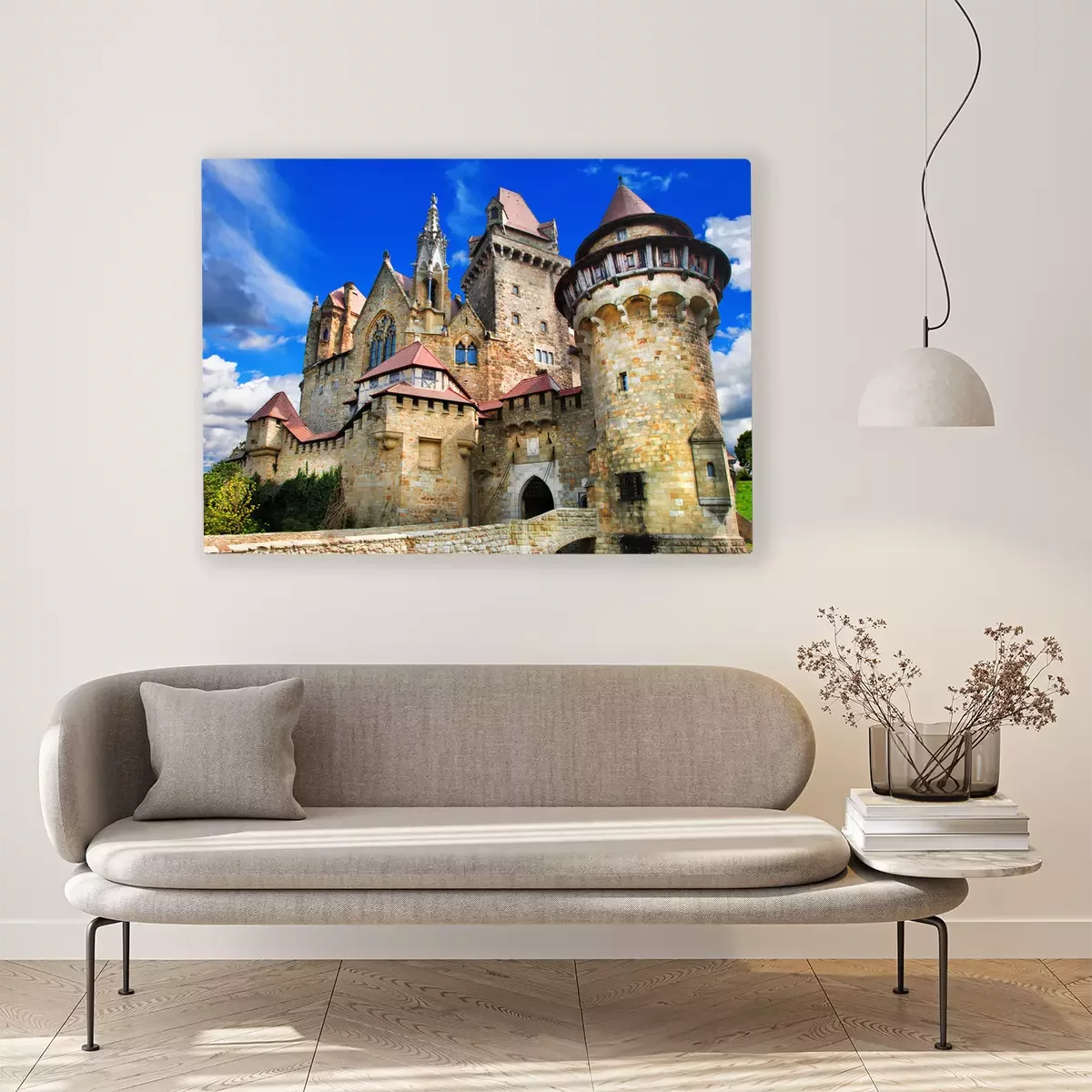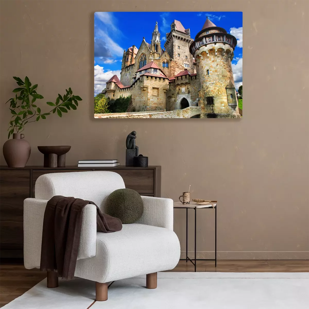 Canvas: prachtige middeleeuwse kasteel Kreuzenstein, Oostenrijk