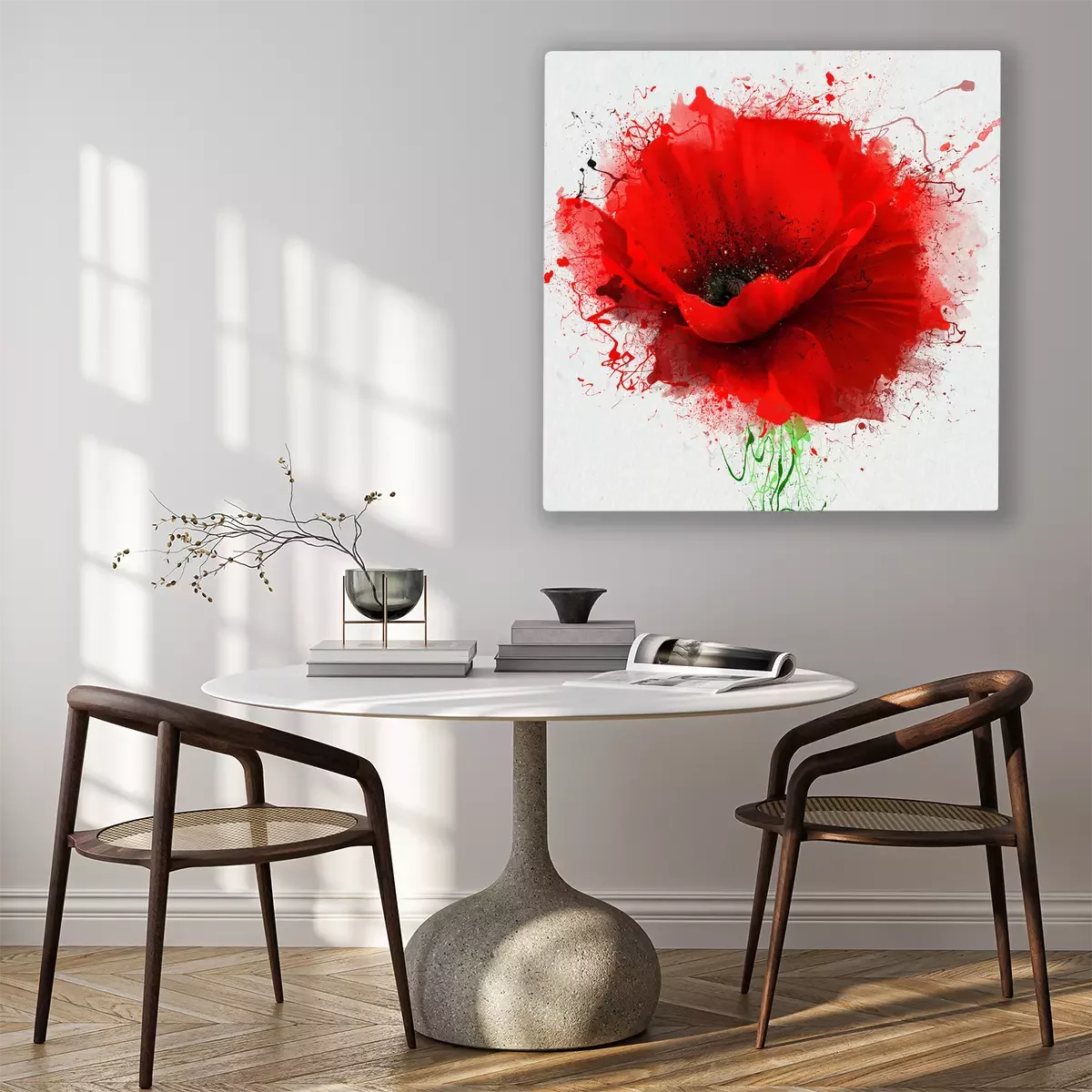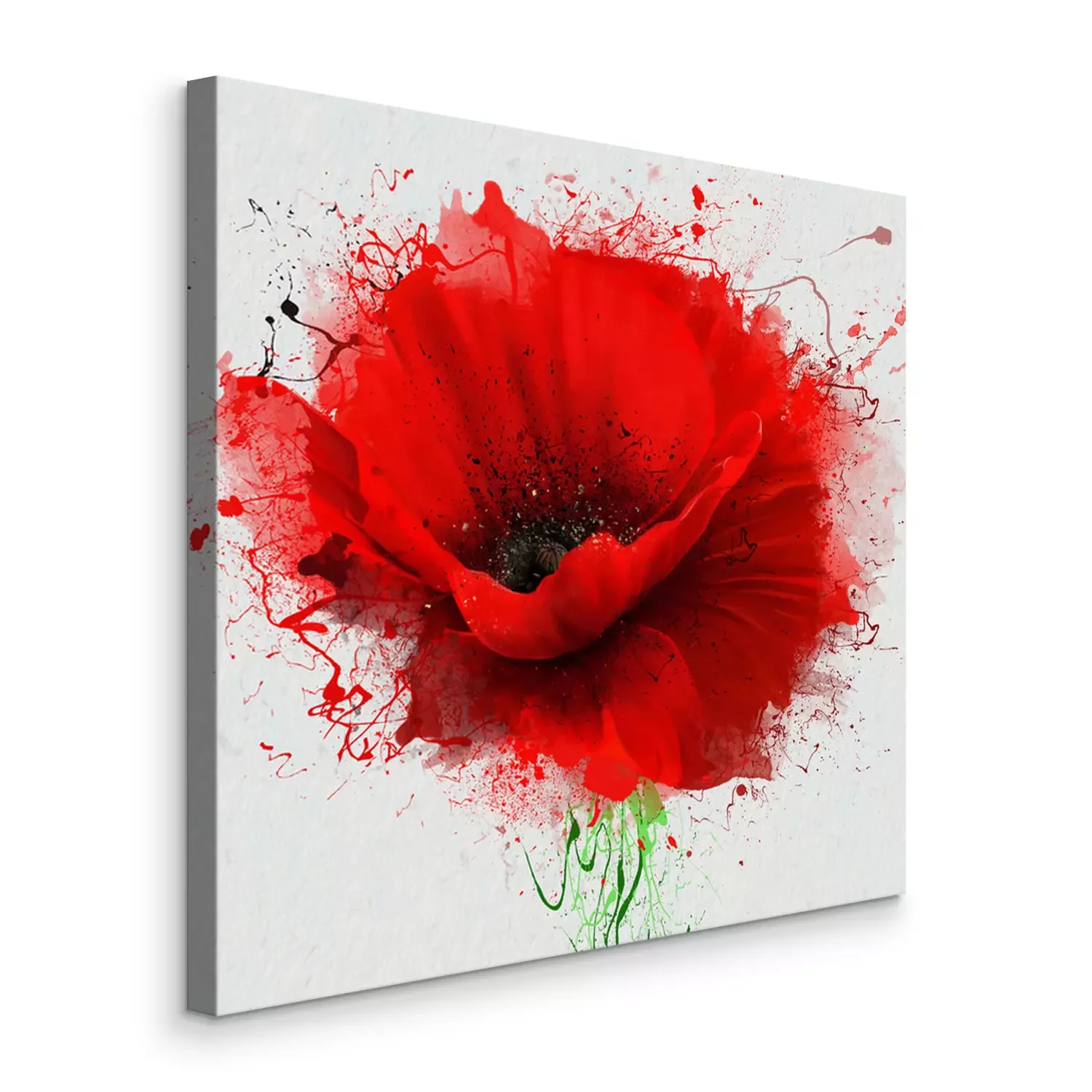 Canvas: Prachtige rode poppy close-up op een witte achtergrond, met elementen van de schets en spuitverf, als illustratie voor de omslag van de Notitieblok of notitieboekje, of op kleding drukken