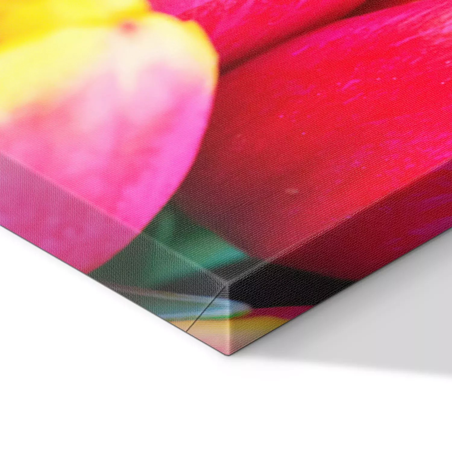 De print wordt aangebracht op hoogwaardig canvas dat op een schildersweefgetouw (spieraam) wordt gespannen. Omdat de print de zijranden bedekt, hoeft het ontwerp niet met een extra kader te worden omlijst. Wij raden ook composities aan die uit meerdere foto's bestaan en zo een coherente compositie vormen.